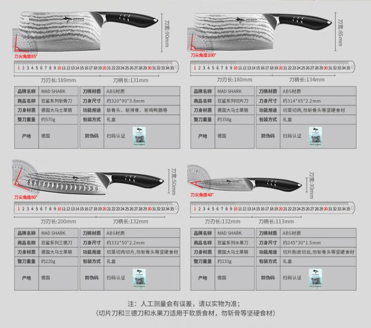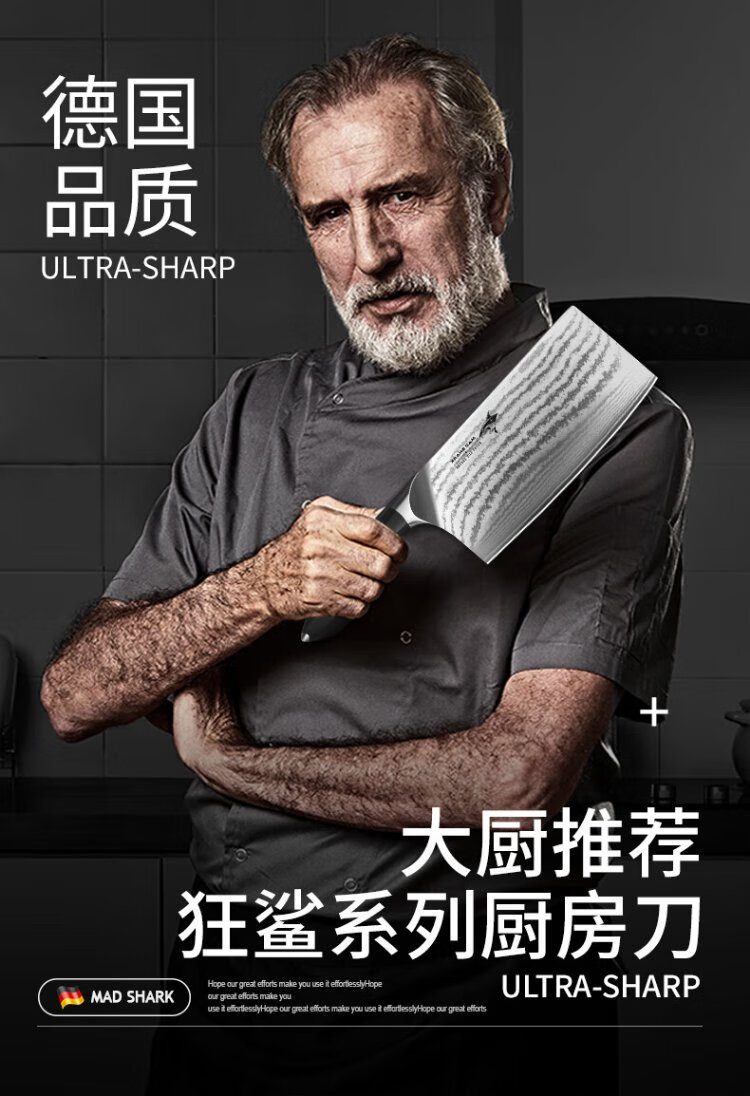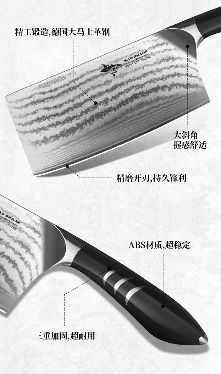 MAD SHARK德国进口大马士革切片刀家用锋利菜刀切片刀厨房切肉刀