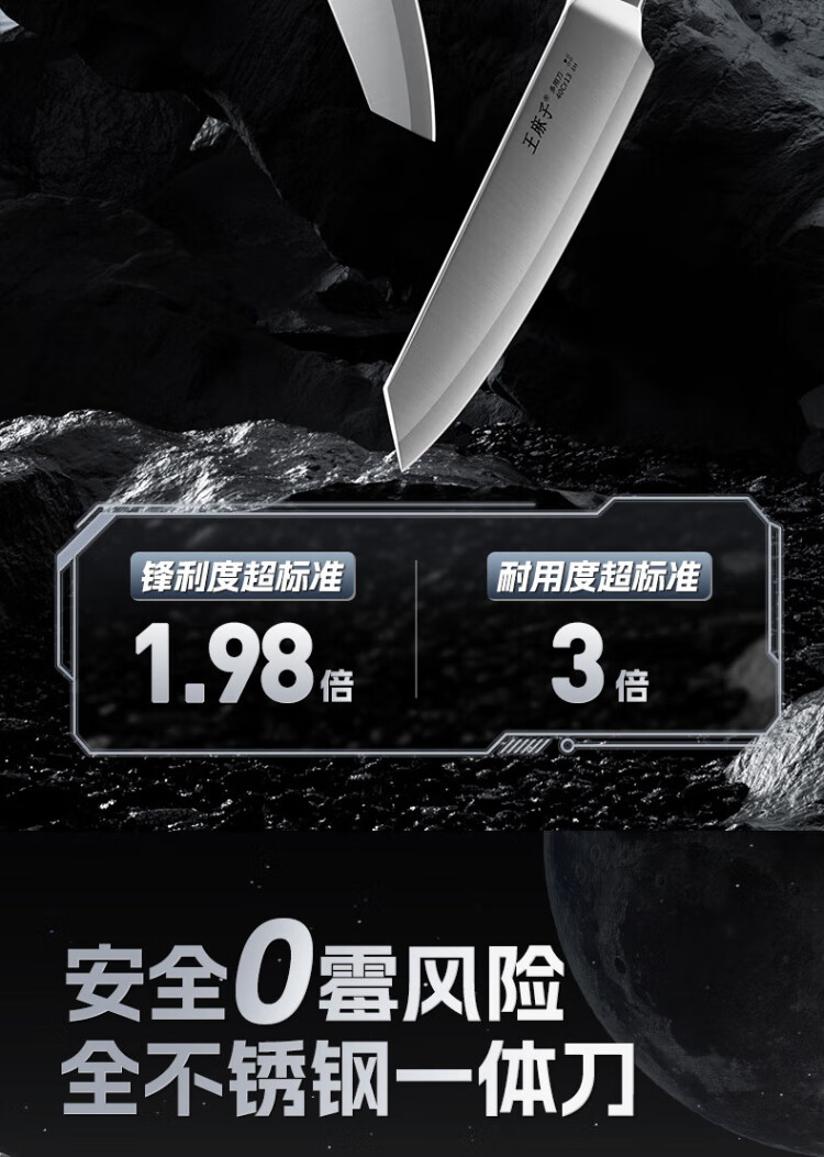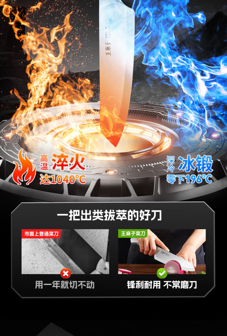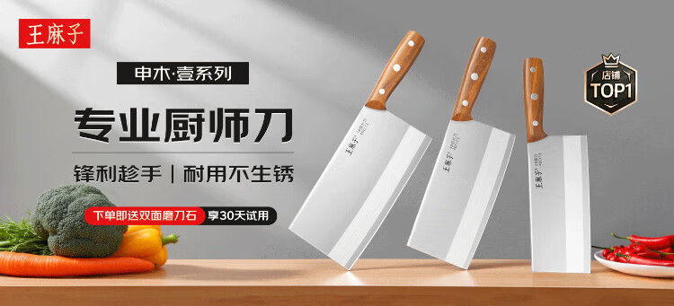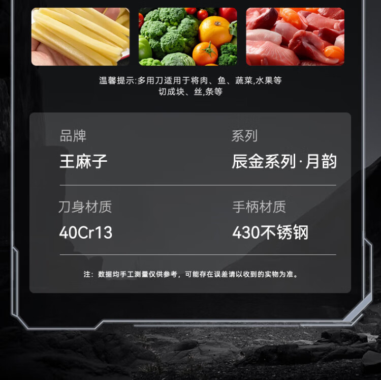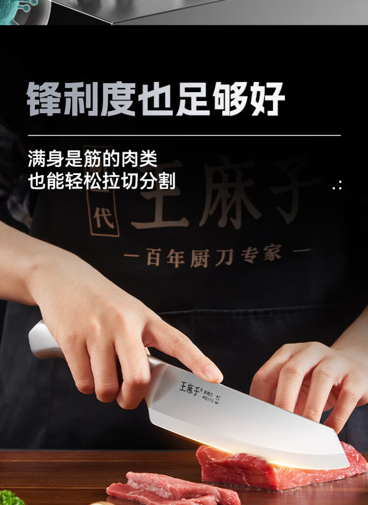 王麻子家用菜刀三德刀 切水果辅食菜肉多功能全不锈钢刀具小厨刀