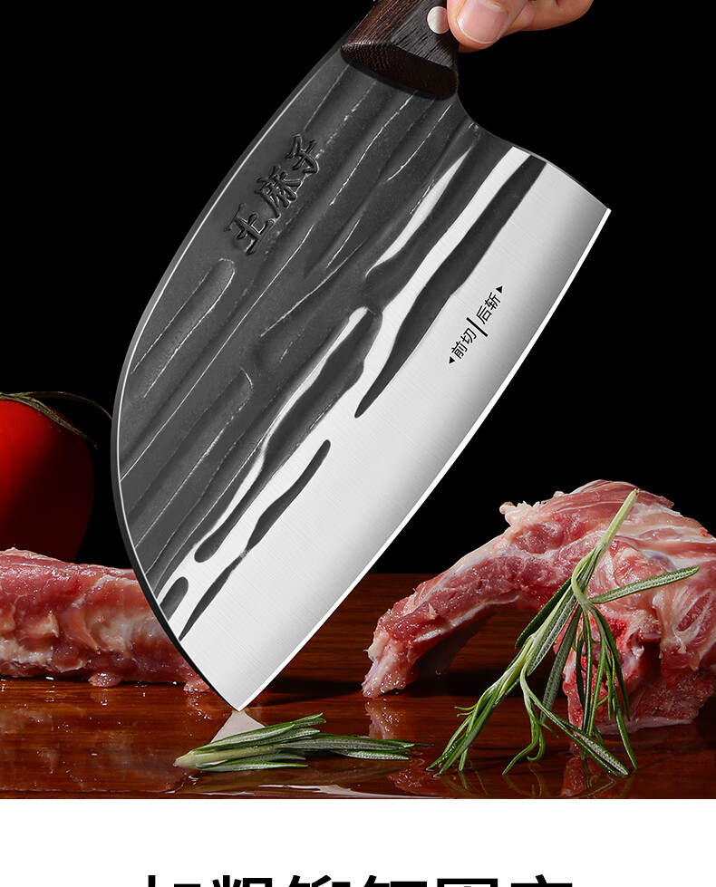 Wang Mazi Küchenmesser, Haushaltsmesser, Küchenmesser, geschmiedetes Messer, Schneiden von Fleisch, Schneiden von Gemüse, Schneidemesser, Knochenhackmesser, Schneiden von Mehrzweckmesser, geschmiedetes Hackmesser + Messerschärfer