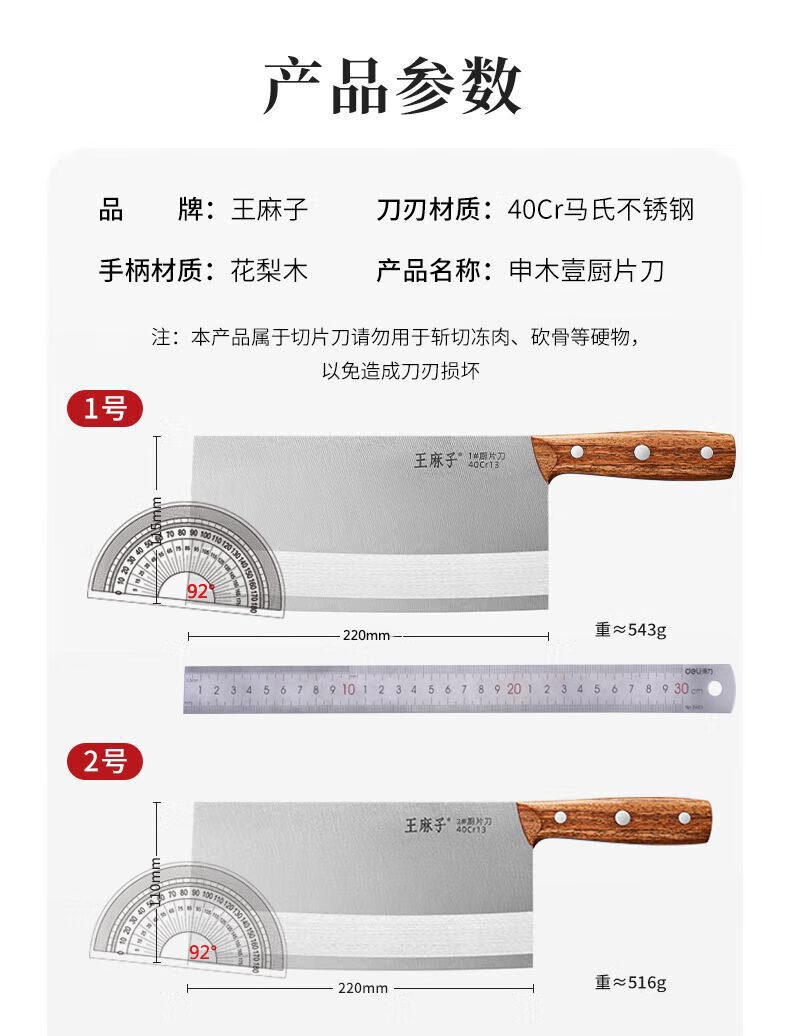 王麻子菜刀家用厨房刀具斩切两用刀厨师专用锋利不锈钢切菜切肉切片刀 1号厨片刀(厨师专用)