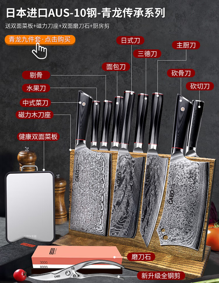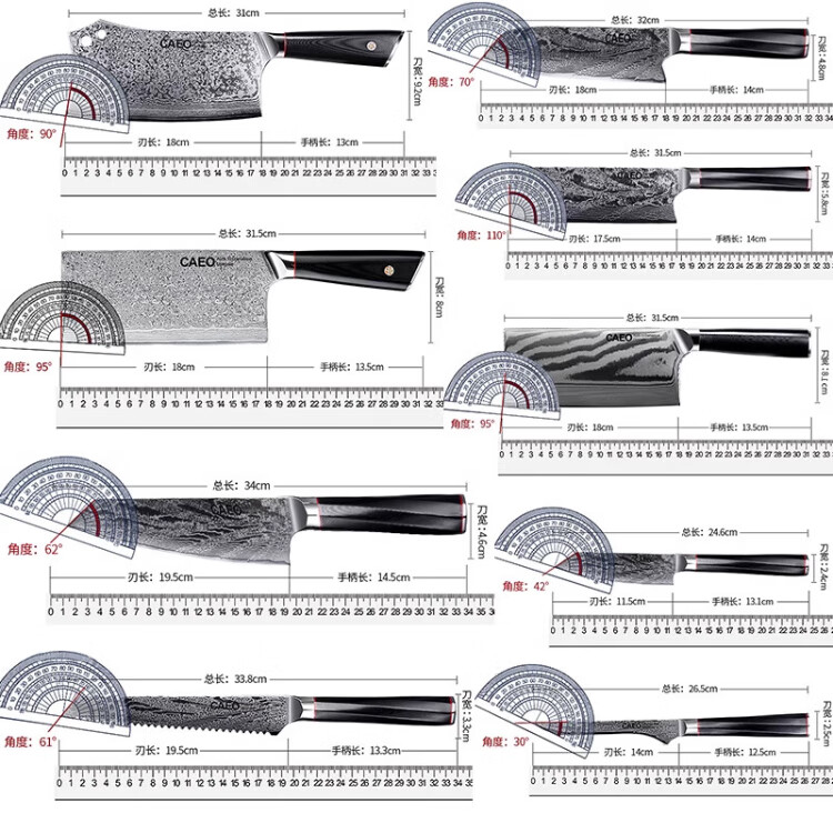 CAEO Couteau de cuisine en acier Damas importé du Japon, couteau de cuisine, couteau à trancher la viande, ménage chef allemand, ensemble à découper les os, grand couteau de cuisine chinois, acier Damas japonais