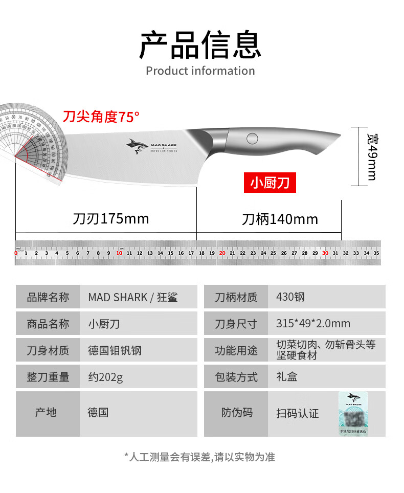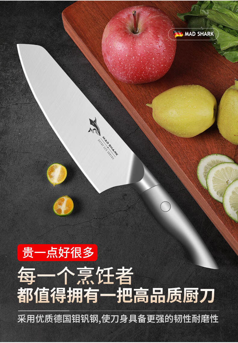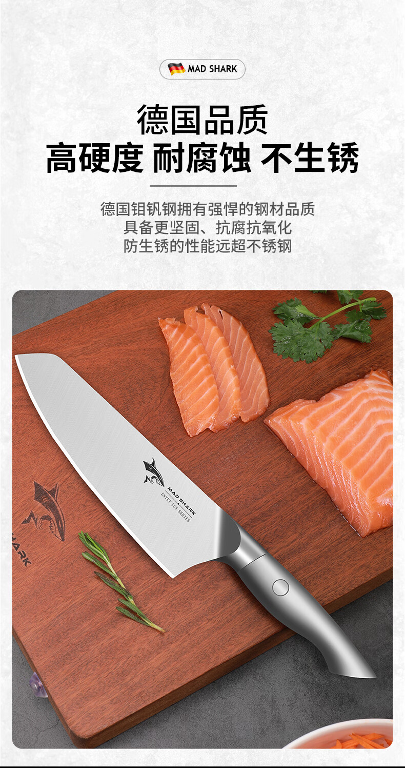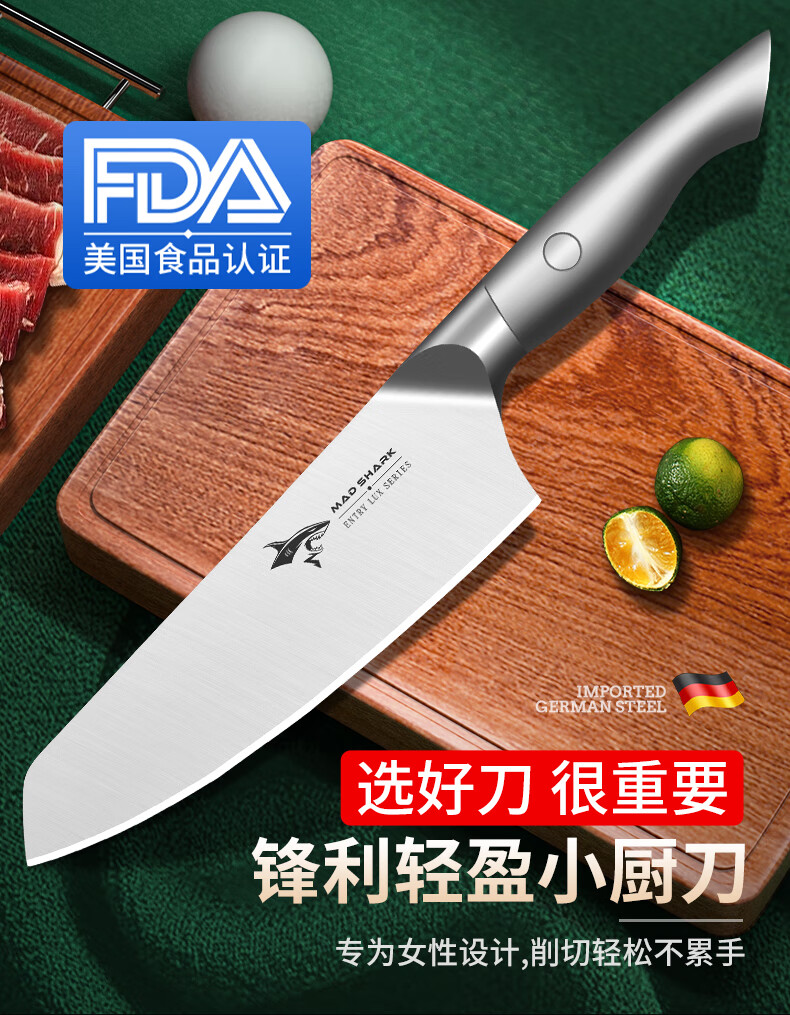 MAD SHARK狂鲨德国进口小切菜刀家用切片刀水果刀不锈钢瓜果寿司料理刀 厨房多用刀