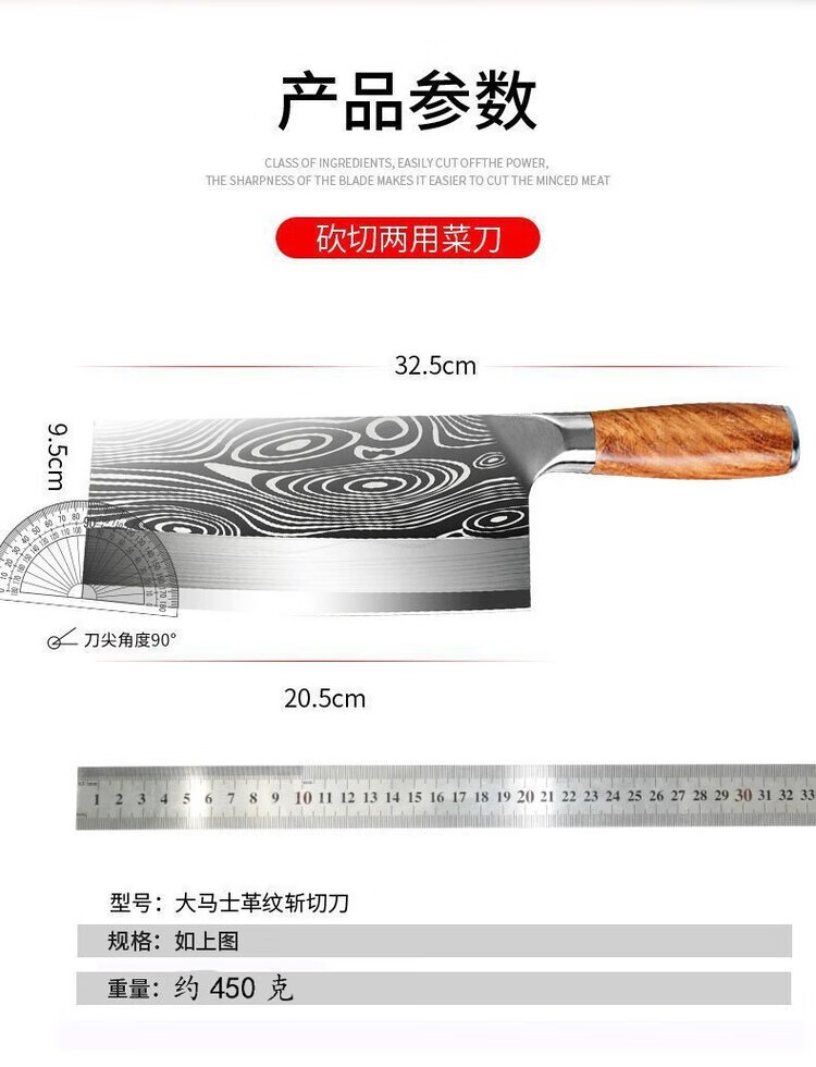Fat Donglai couteau de cuisine en acier inoxydable à double usage couteau à découper avant et arrière 60 et plus couteau de cuisine à tête plate en acier au tungstène de 20,5 cm
