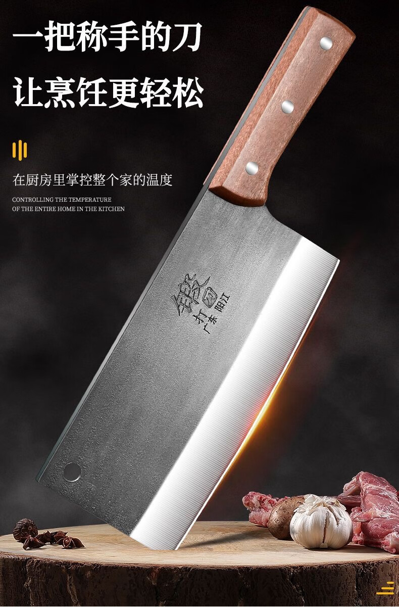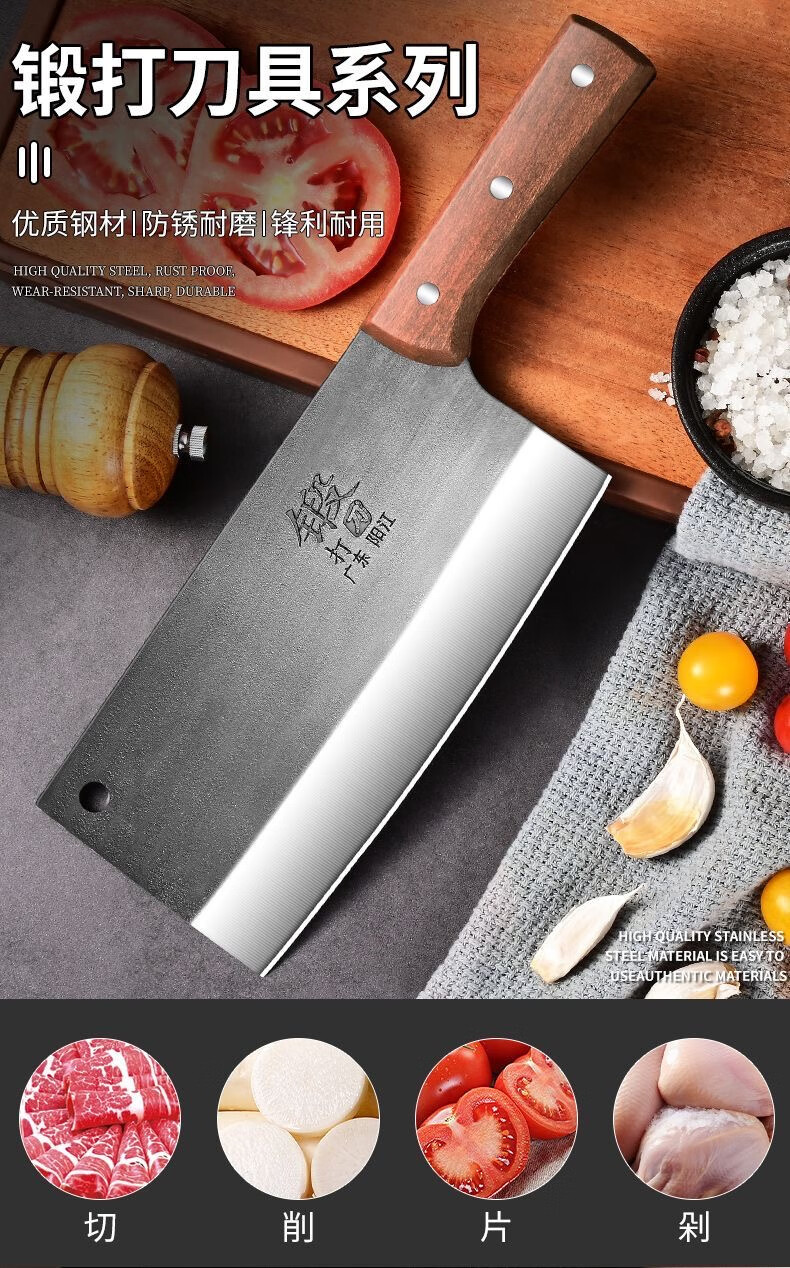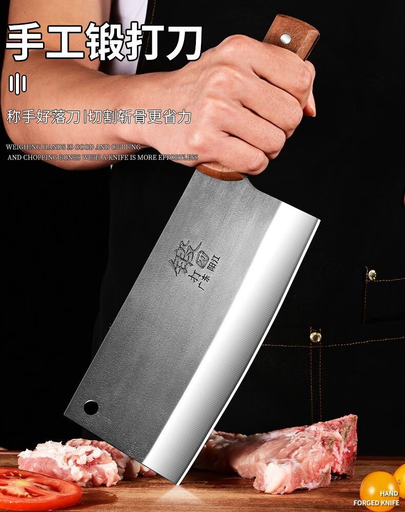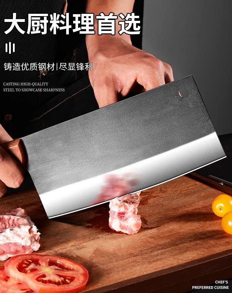 Couteau de cuisine forgé, couteau à double usage pour hacher et couper, trancher la cuisine et couperet à viande, couteau de cuisine multifonctionnel spécial ménager du chef, couteau à découper estampillé 2.0M8, 1 pièce