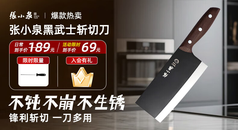 Zhang Xiaoquan, couteau à découper Black Samurai amélioré de troisième génération, couteau de cuisine tranchant à double usage pour os et légumes, couteau à découper Black Samurai domestique, mise à niveau de troisième génération