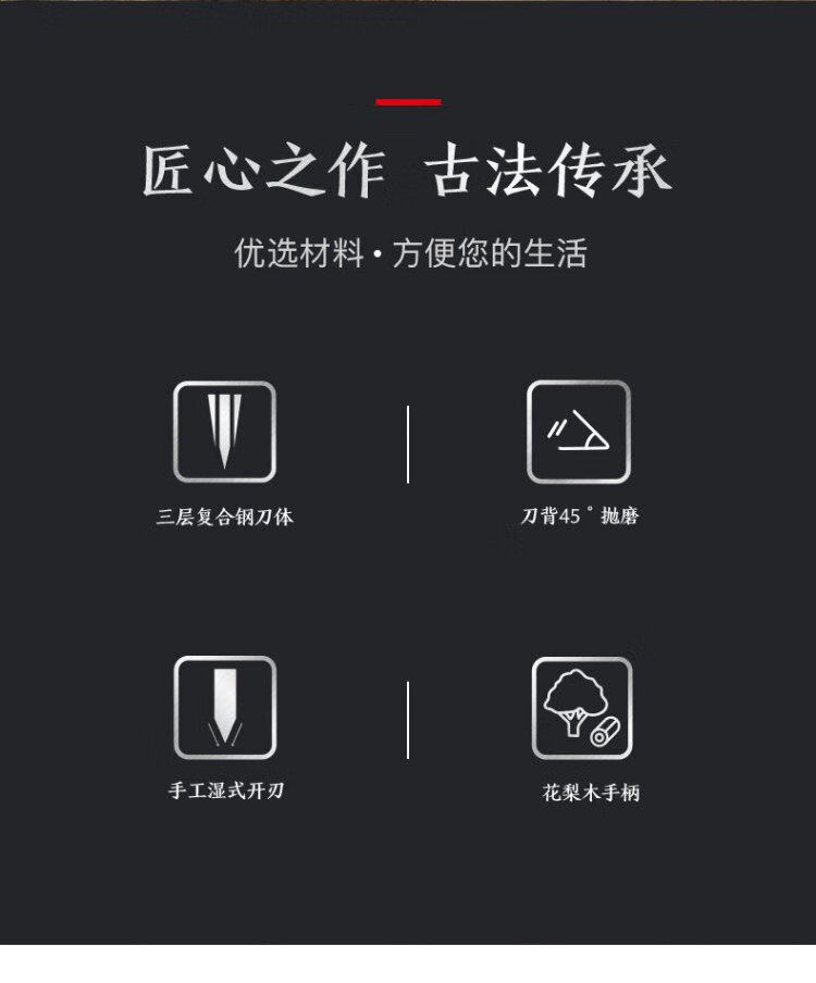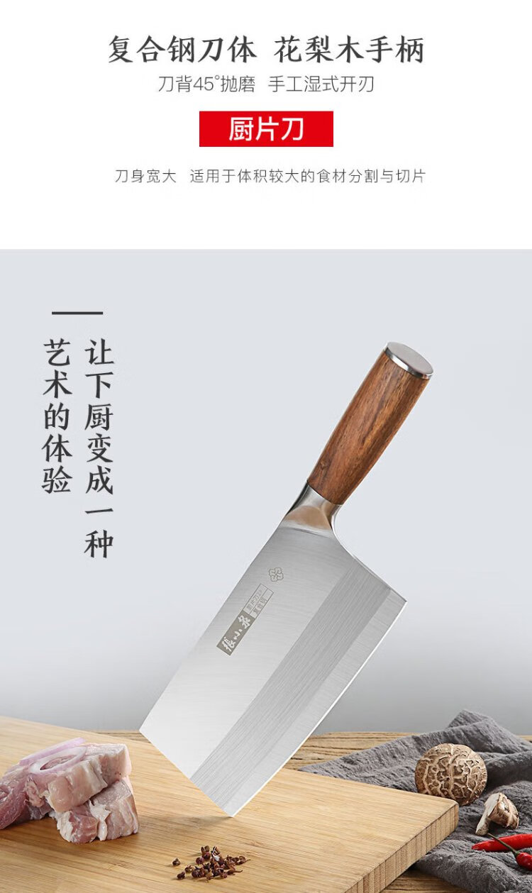 Zhang Xiaoquan Mingjiang Couteau à trancher de cuisine en acier composite 2# Couteau de chef Manche en bois massif Couteau à trancher Couteau de cuisine domestique Couteau spécial