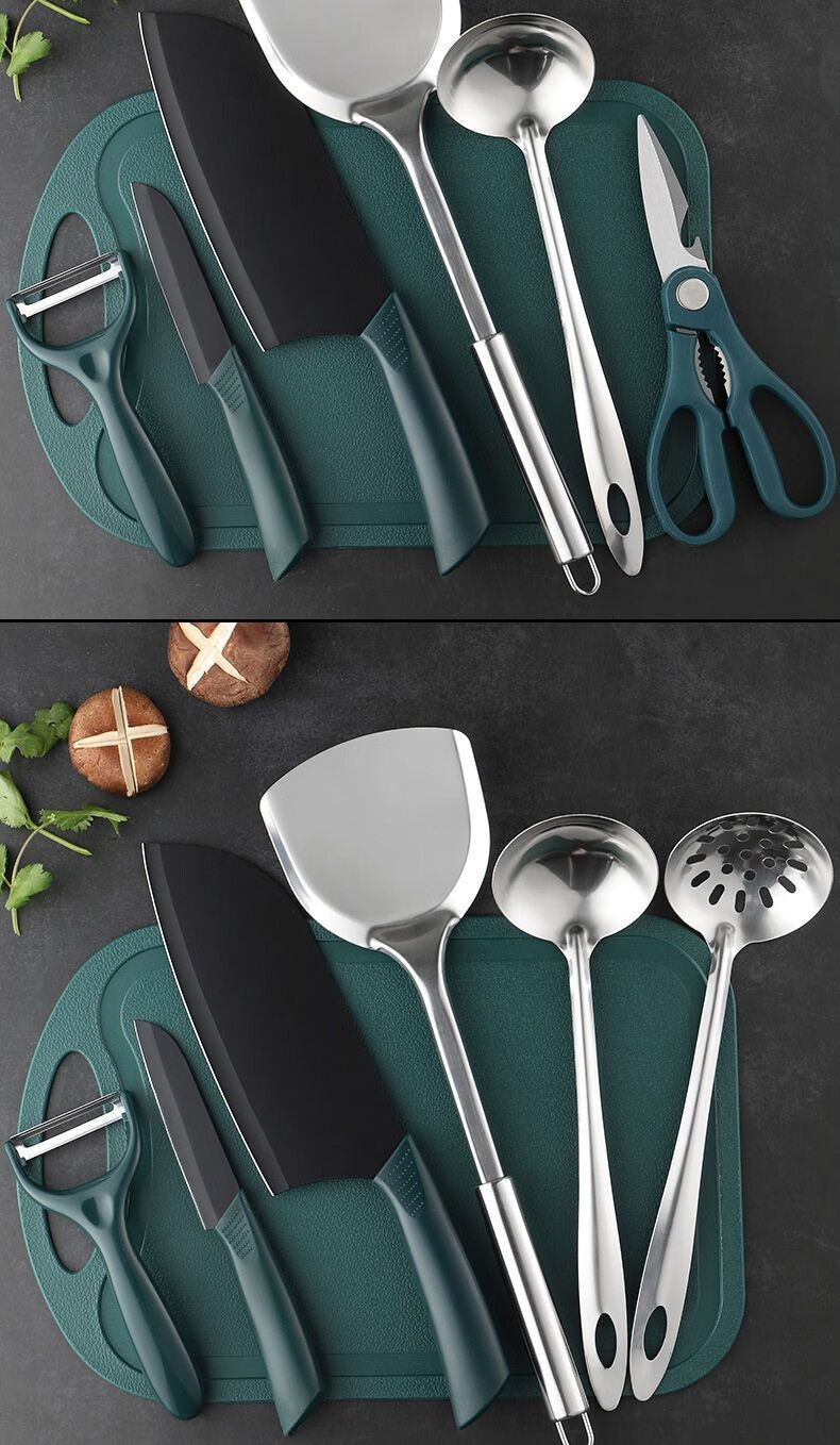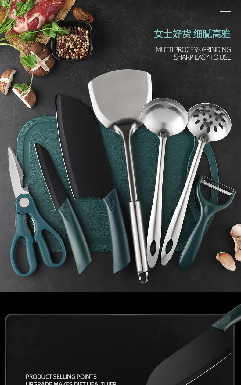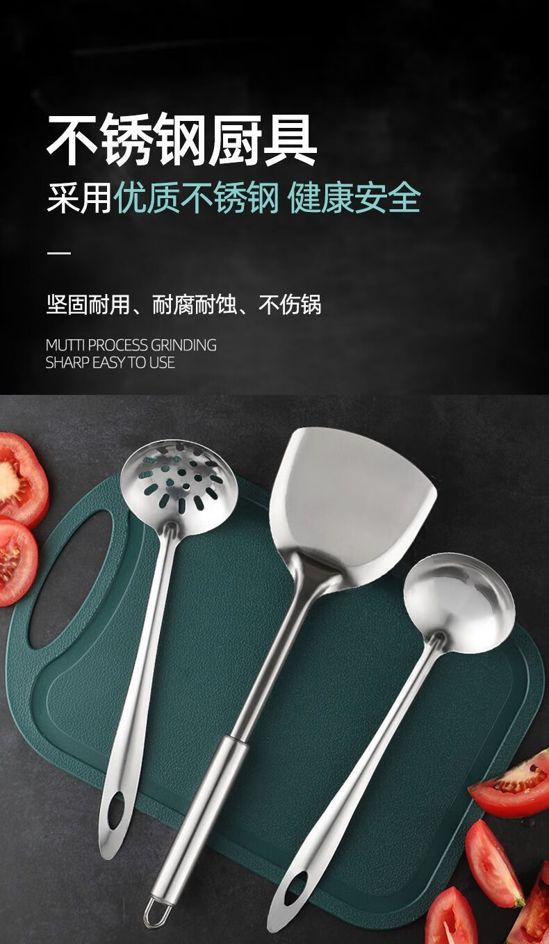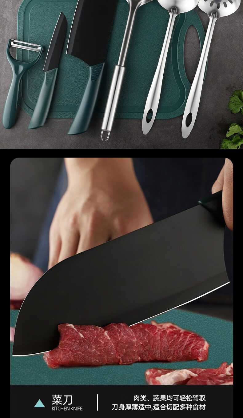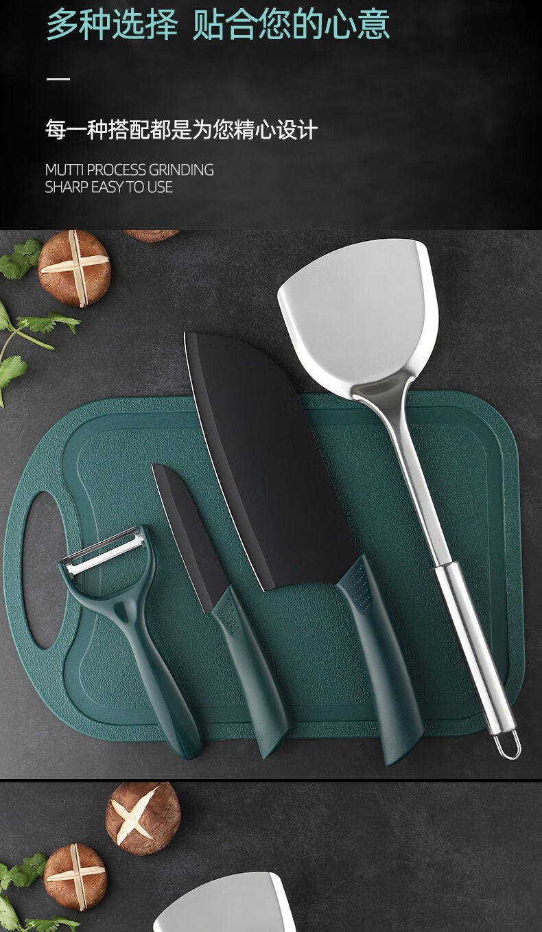 失传者菜刀菜板刀具不锈钢厨具加厚套装家用刀锋利切片刀切菜板宿舍厨房 墨绿菜板两件套+锅铲小勺
