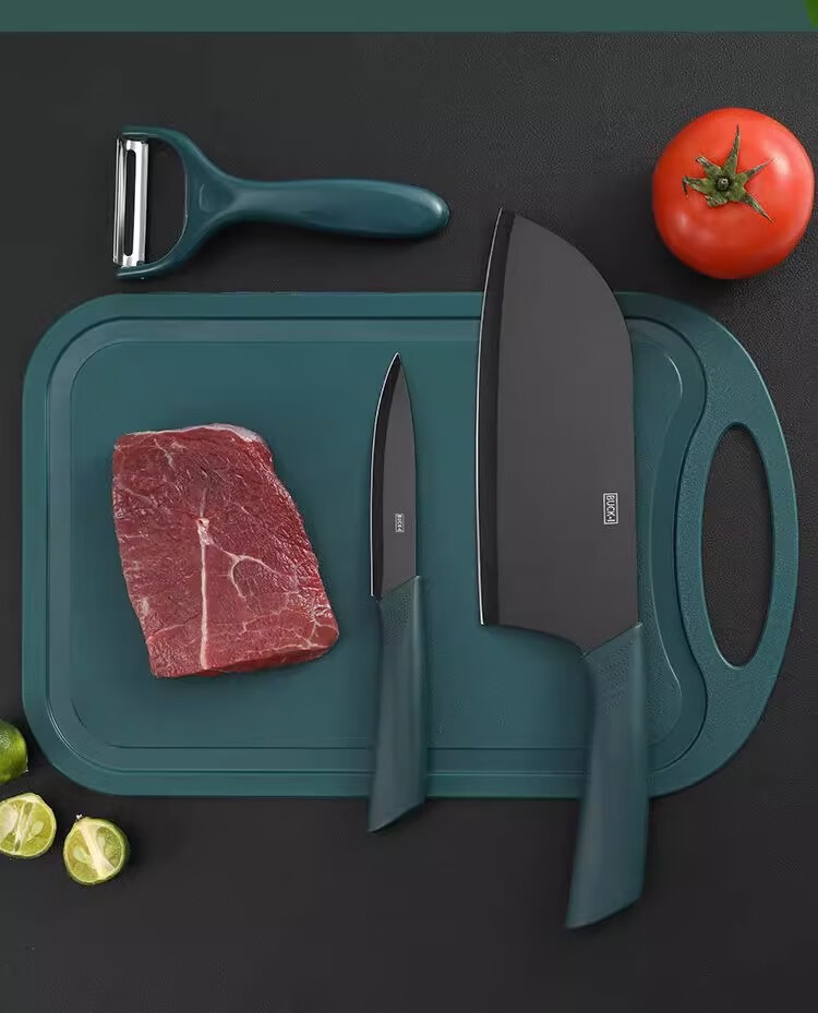 Planche à découper et couteau de cuisine, ensemble complet de couteaux, couteau d'office, couteau à fruits, planche à découper pour dortoir, cuisine dortoir maison, couteau de cuisine tranchant et ultra rapide, planche à découper, couteau à fruits, ensemble de 3 pièces