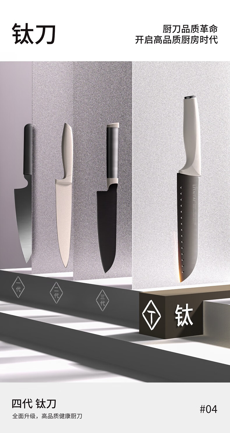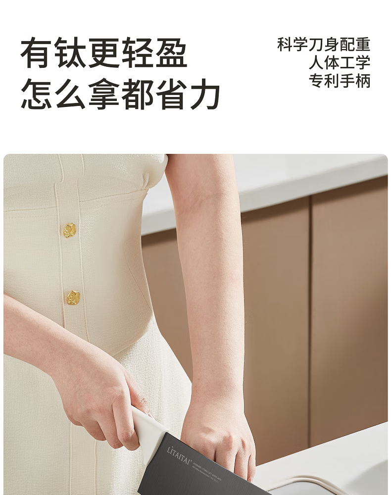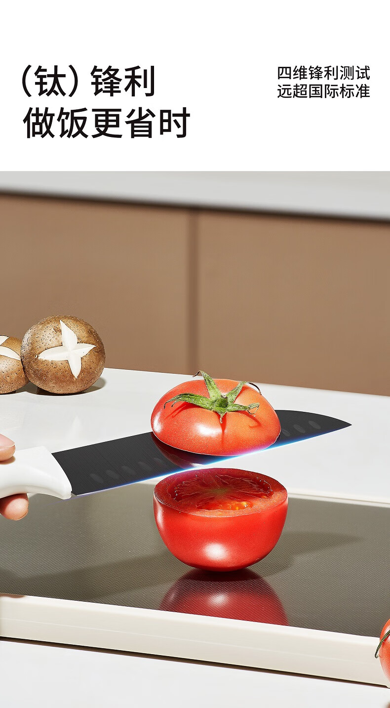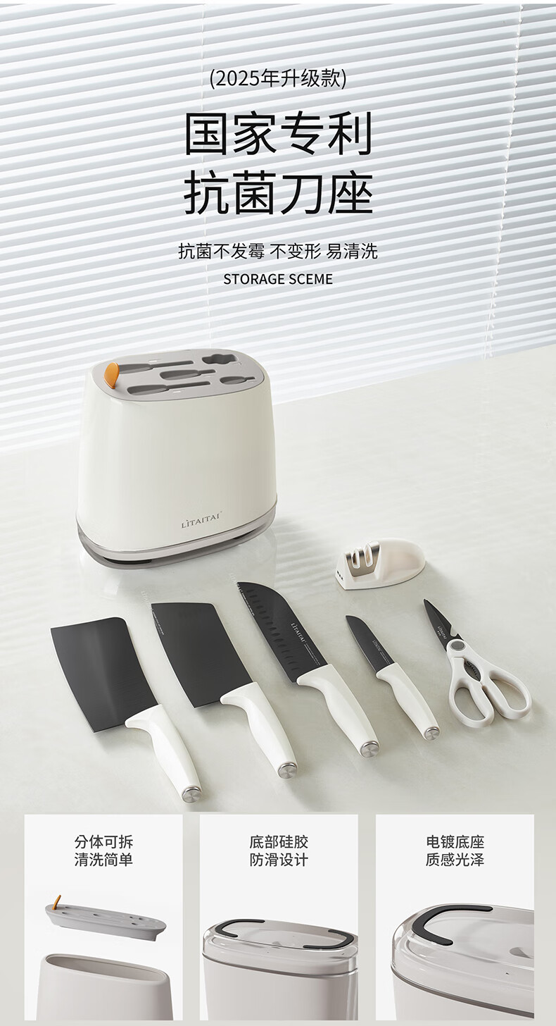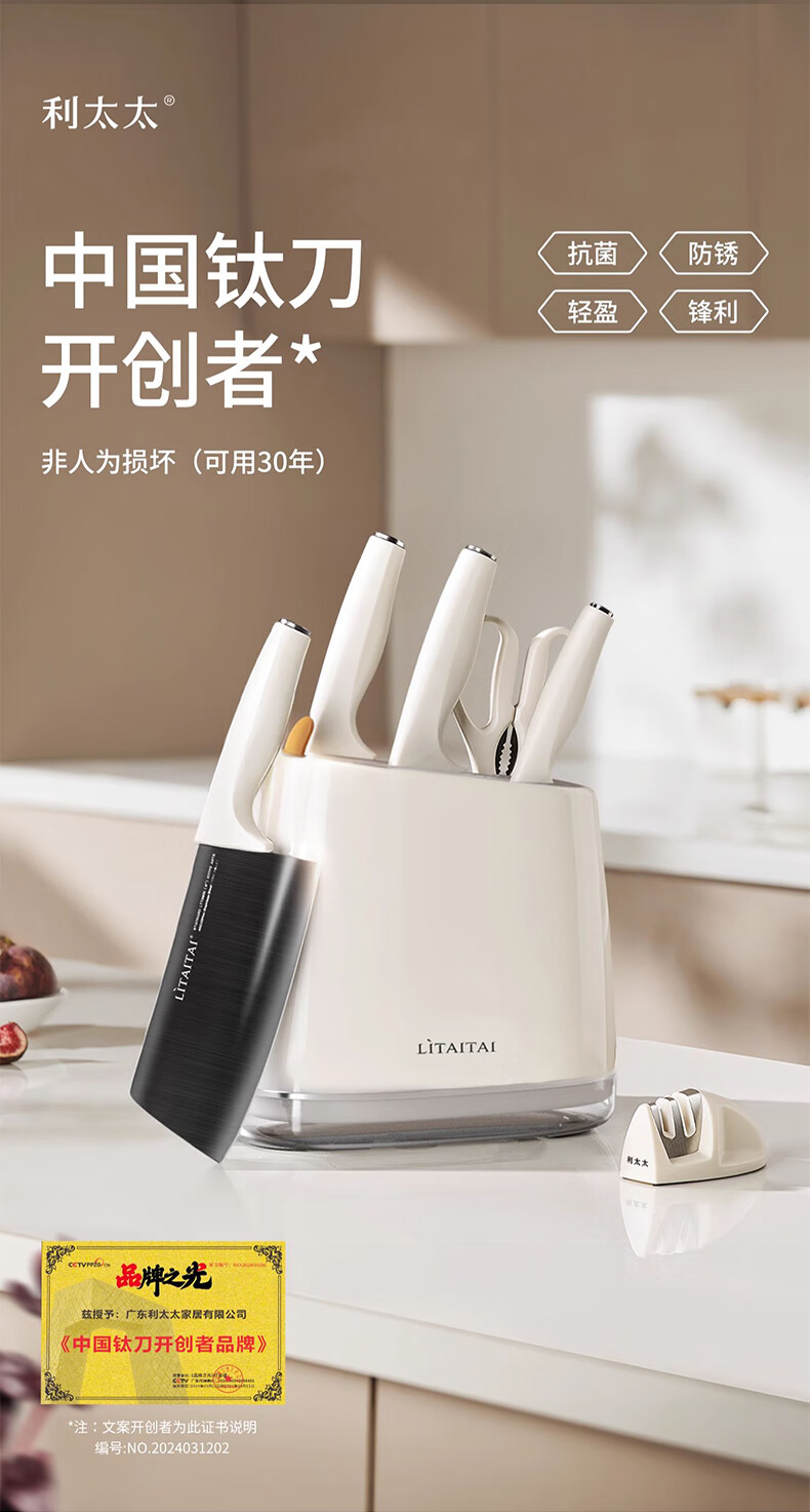 利太太超轻钛抗菌厨房刀具套装全套菜刀家用25年6件套防不生锈带菜板 25年新抗菌钛刀(送磨刀器) 7件套