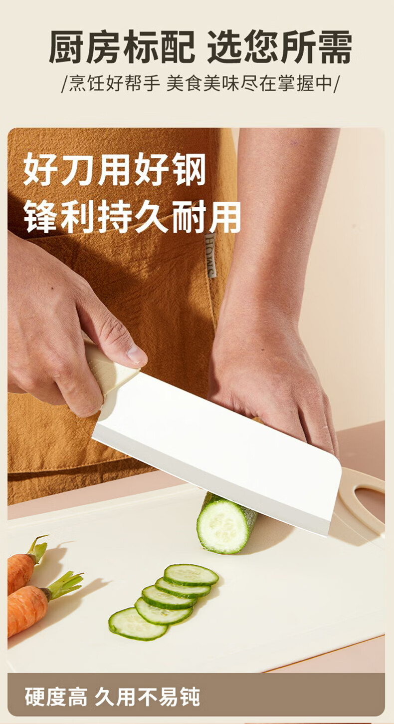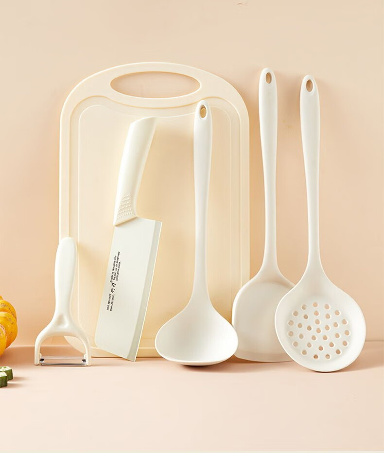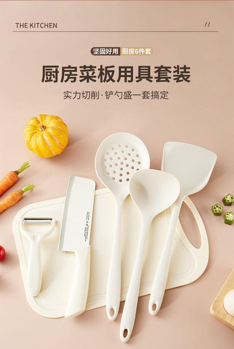 兴刃刀具套装厨房菜刀菜板厨具全套硅胶锅铲勺套装宿舍刀具砧板削皮刀 菜刀菜板+削皮刀+锅铲汤勺三件套