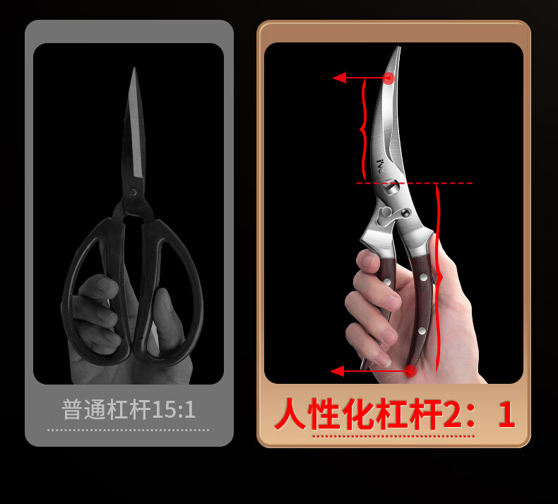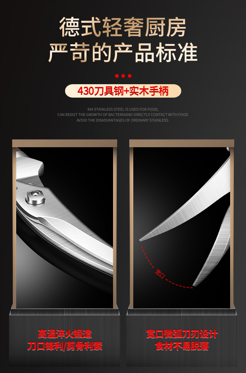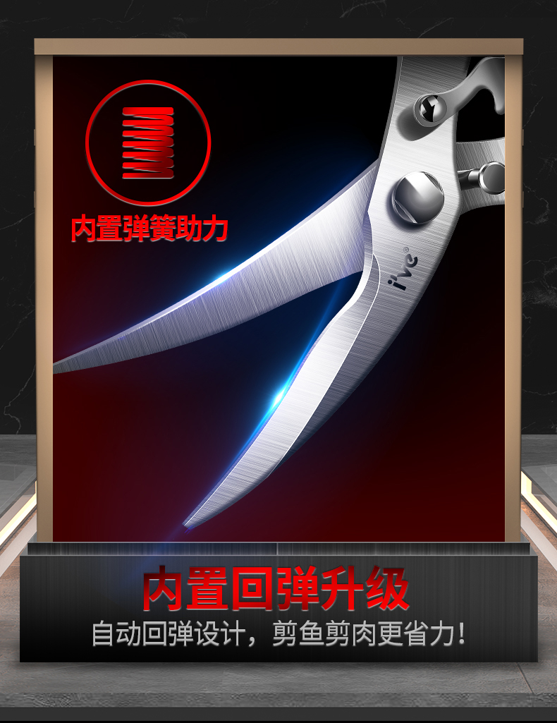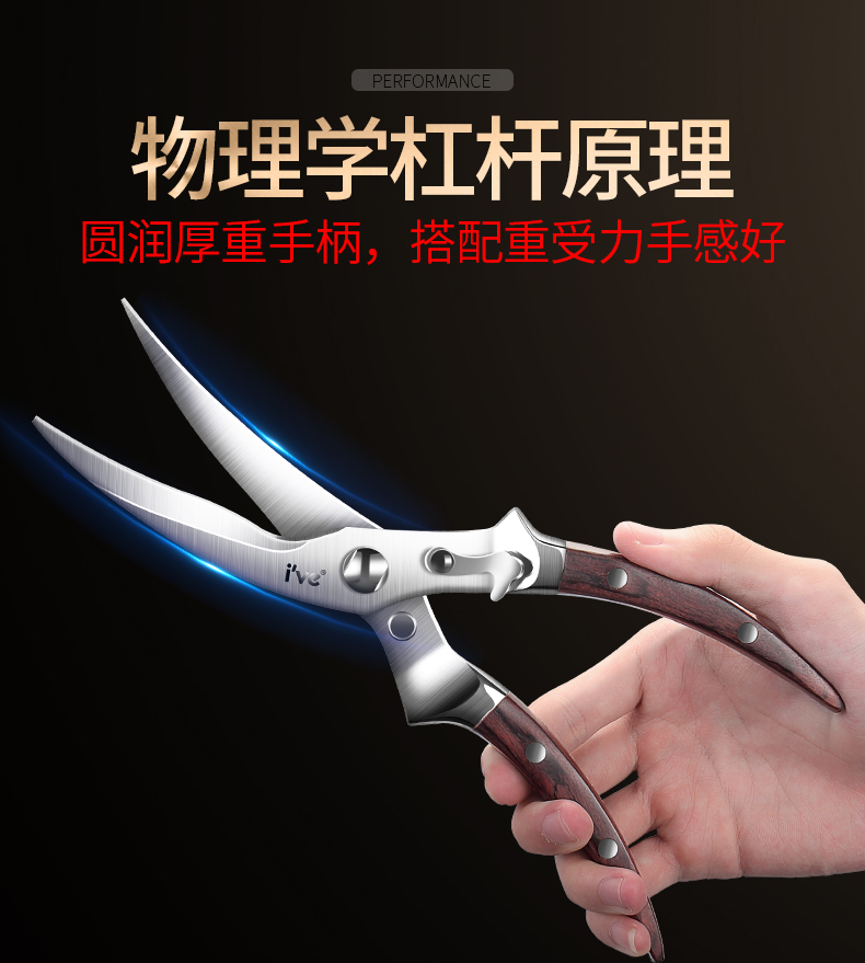 I'VE 德国 厨房专用剪刀家用多功能杀鱼强力剪骨刀食物不锈钢鸡骨剪 酸枝木柄厨房剪