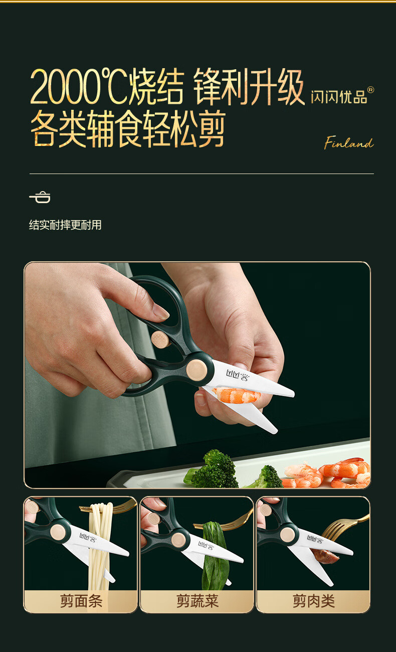 Shining high-quality kitchen scissors, chicken bone scissors, stainless steel kitchen scissors, meat scissors, bone scissors, complementary food scissors with set, Senshan green complementary food scissors