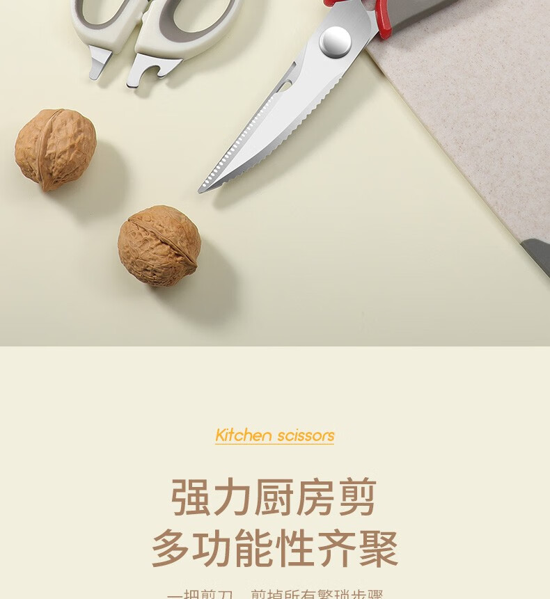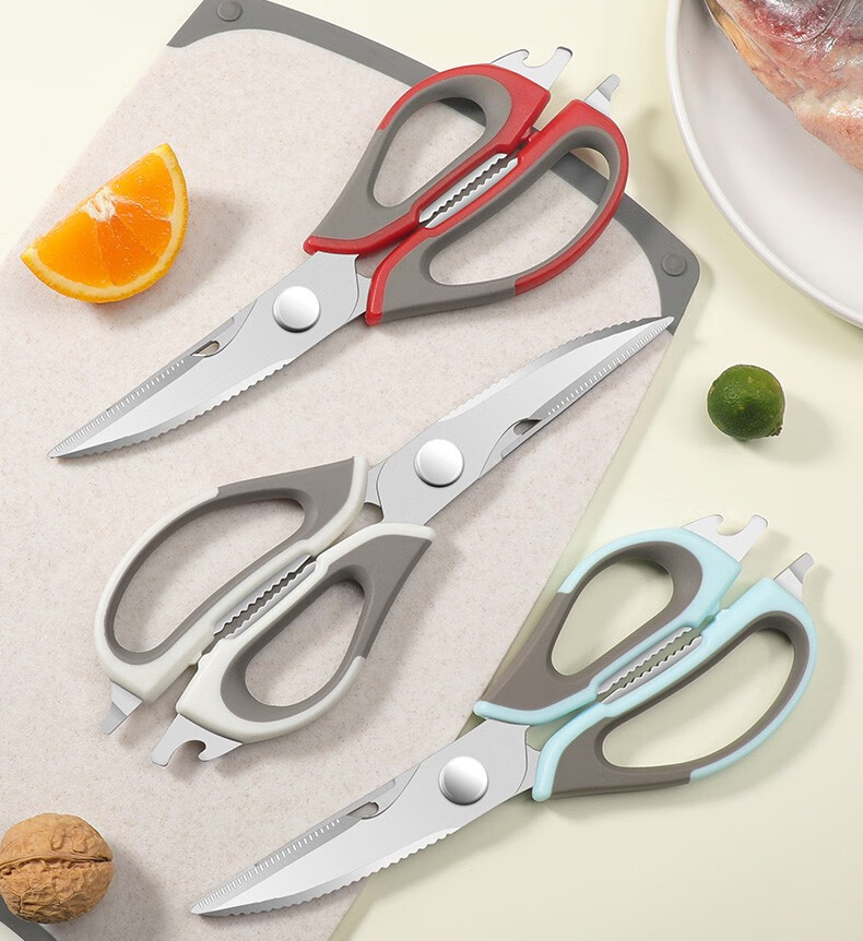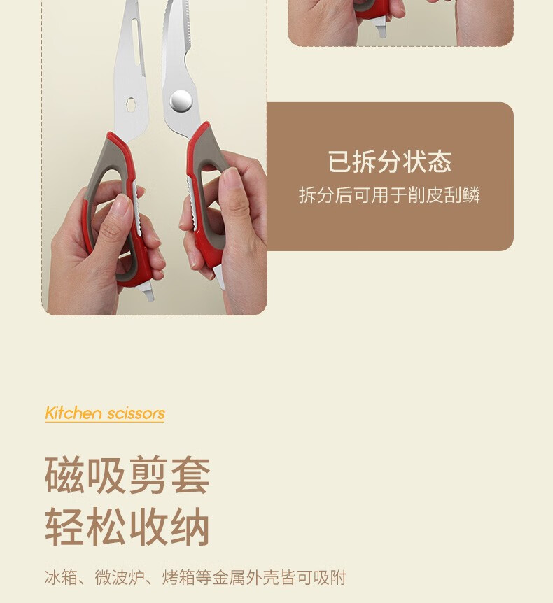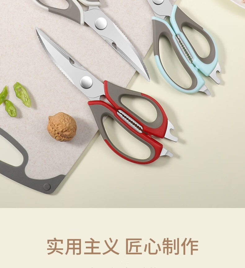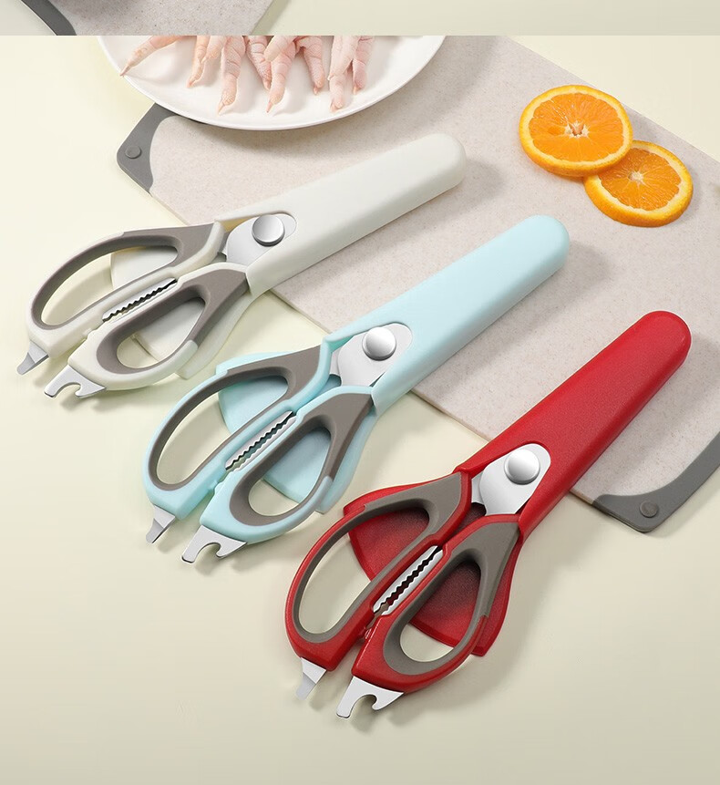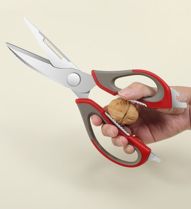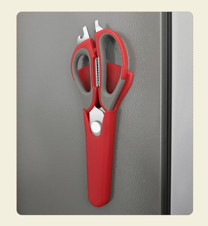 PLYS kitchen bone scissors, powerful chicken bone scissors, household multifunctional barbecue scissors, sharp fish killing and scraping fish scale scissors, red multifunctional kitchen scissors + magnetic scissors set