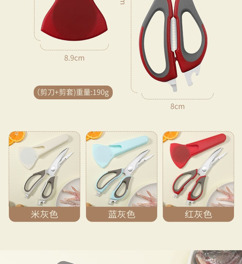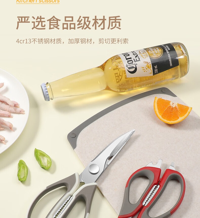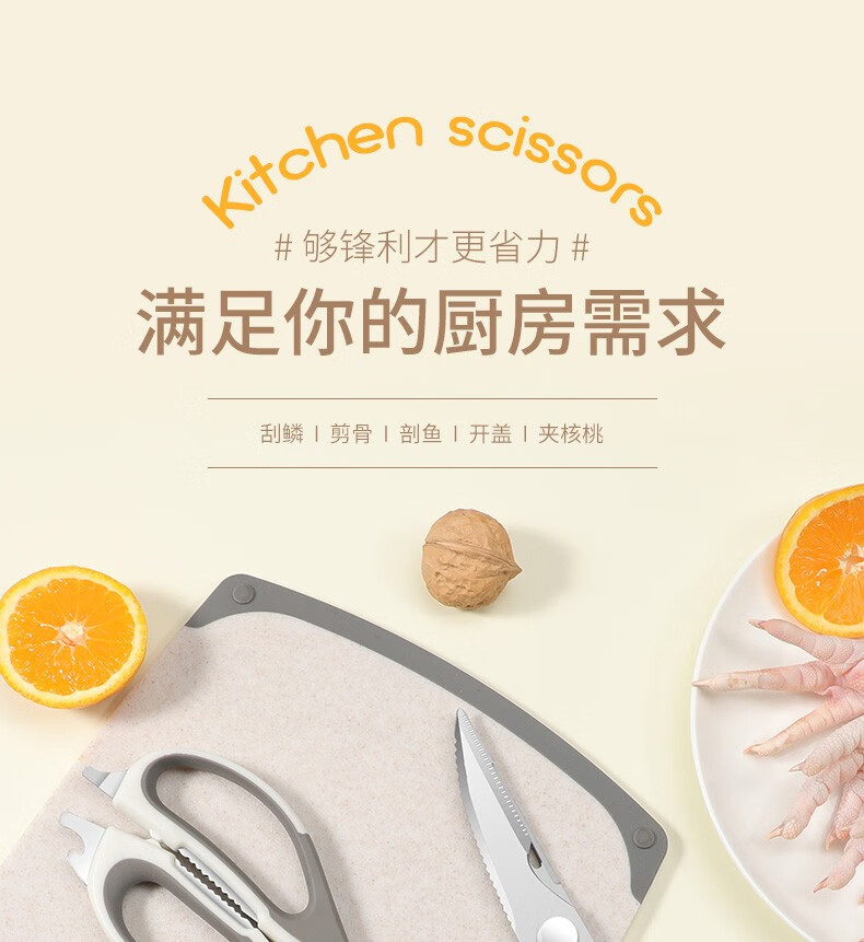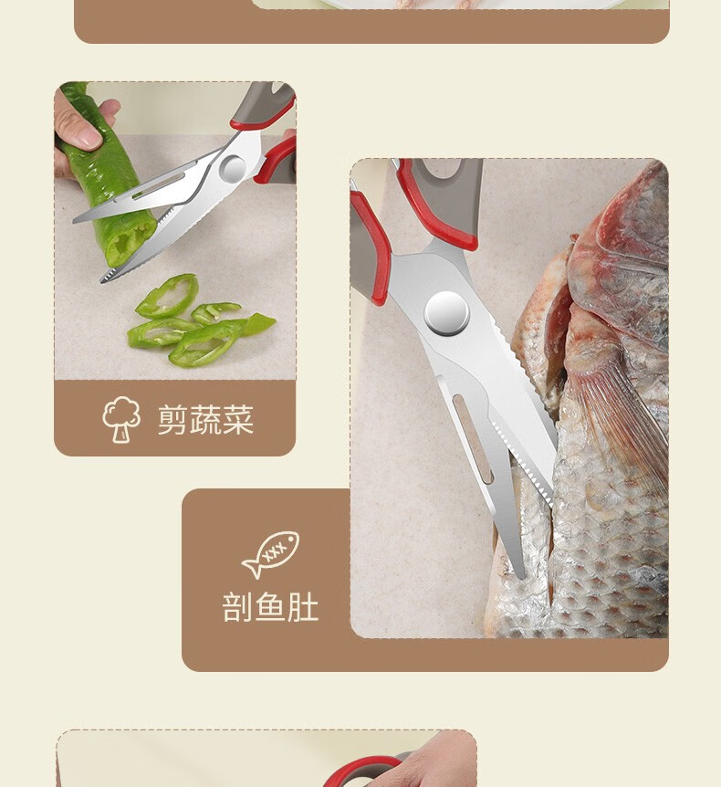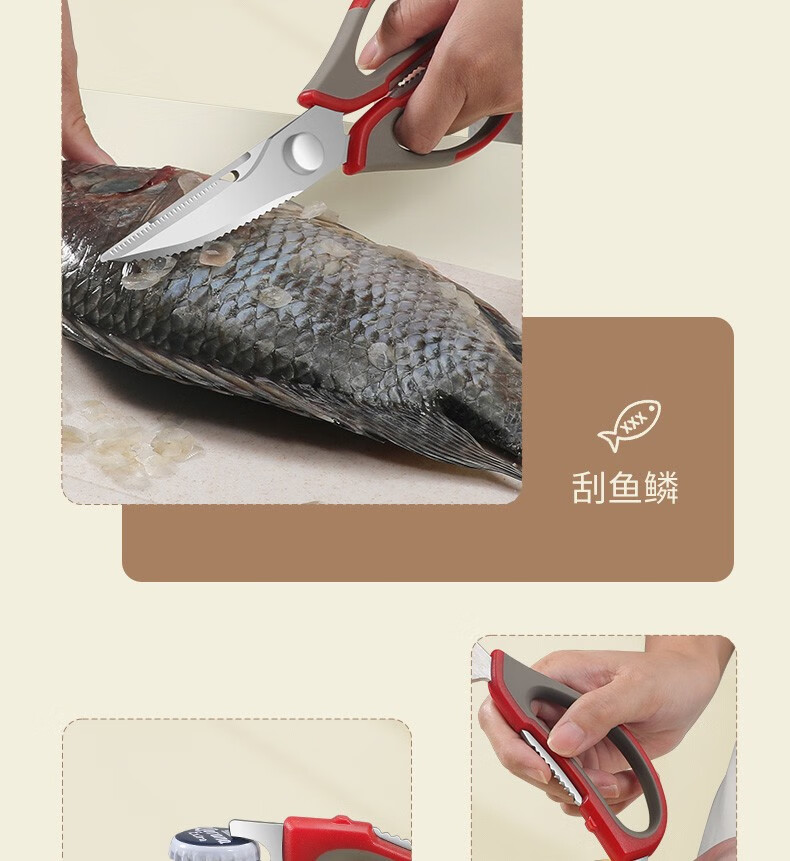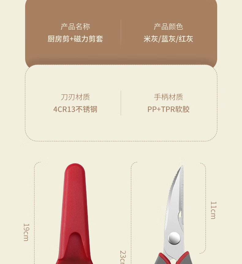 PLYS kitchen bone scissors, powerful chicken bone scissors, household multifunctional barbecue scissors, sharp fish killing and scraping fish scale scissors, red multifunctional kitchen scissors + magnetic scissors set