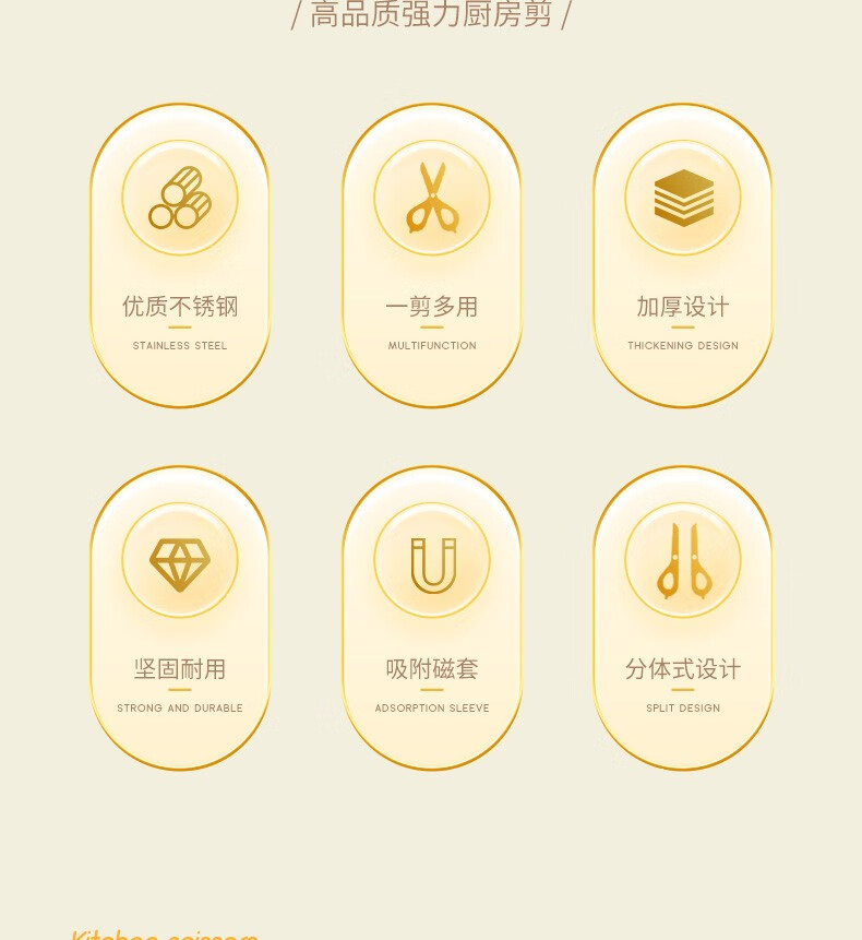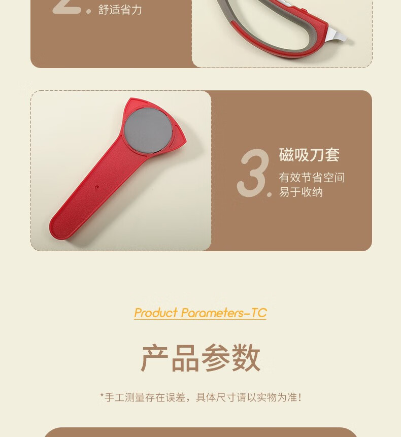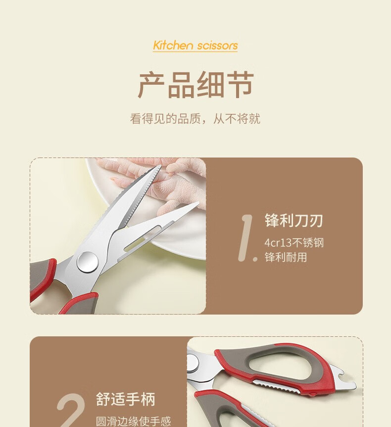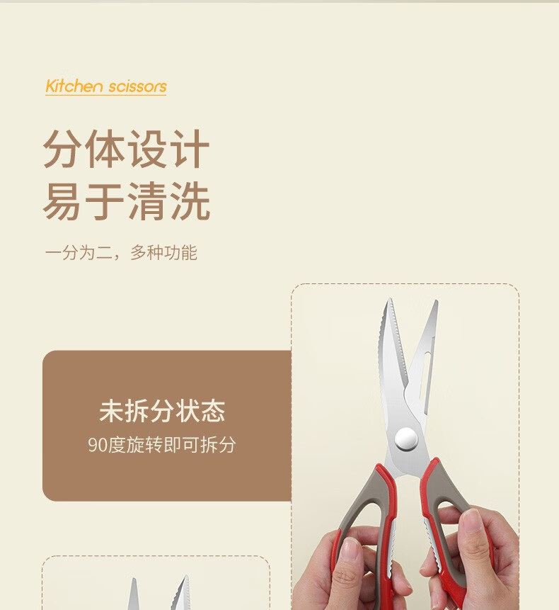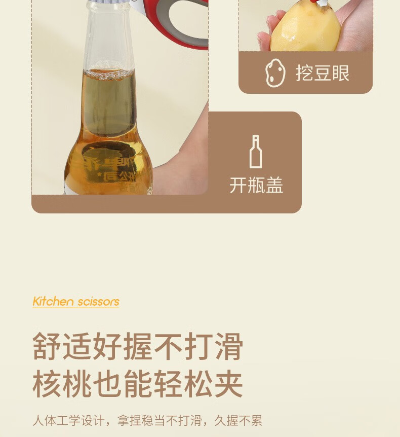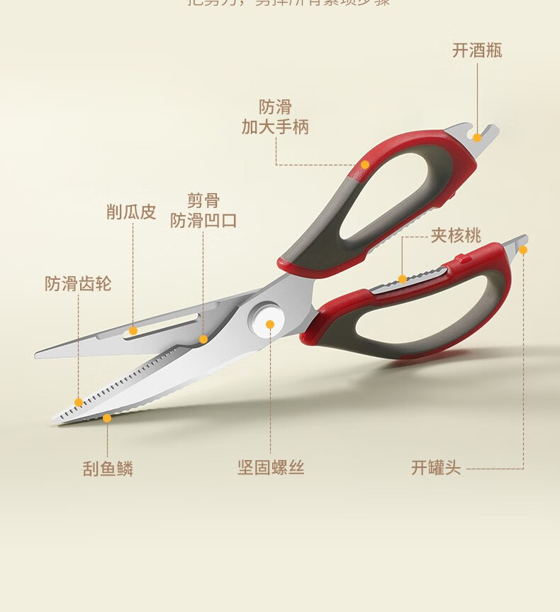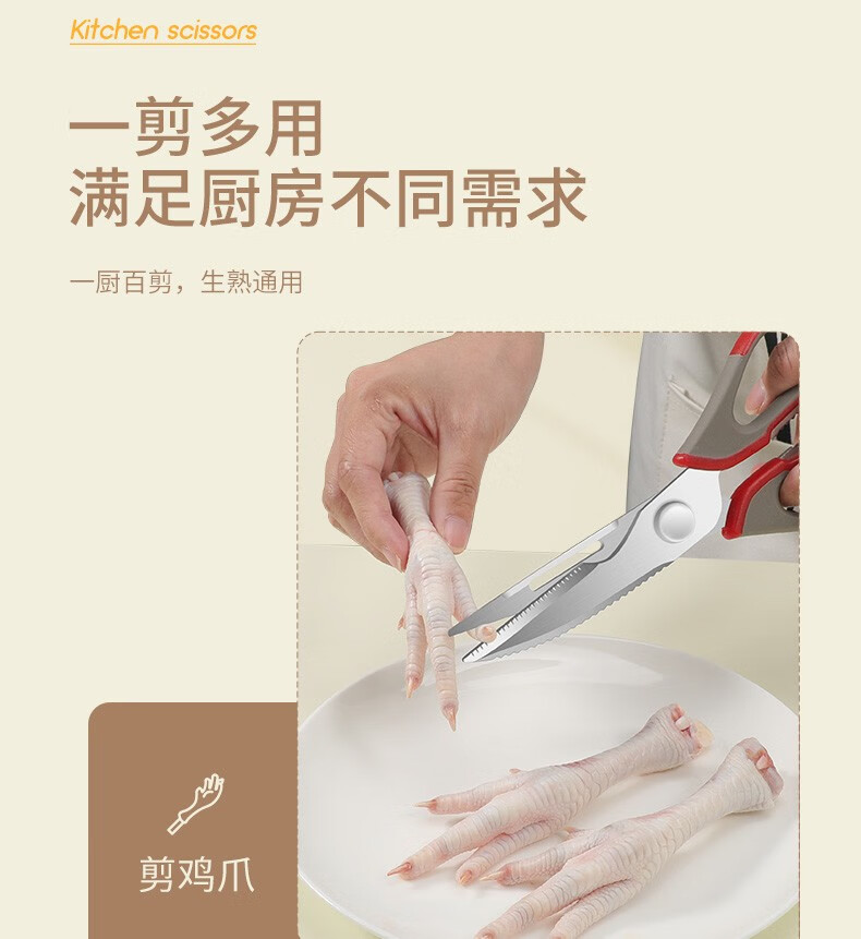 PLYS kitchen bone scissors, powerful chicken bone scissors, household multifunctional barbecue scissors, sharp fish killing and scraping fish scale scissors, red multifunctional kitchen scissors + magnetic scissors set