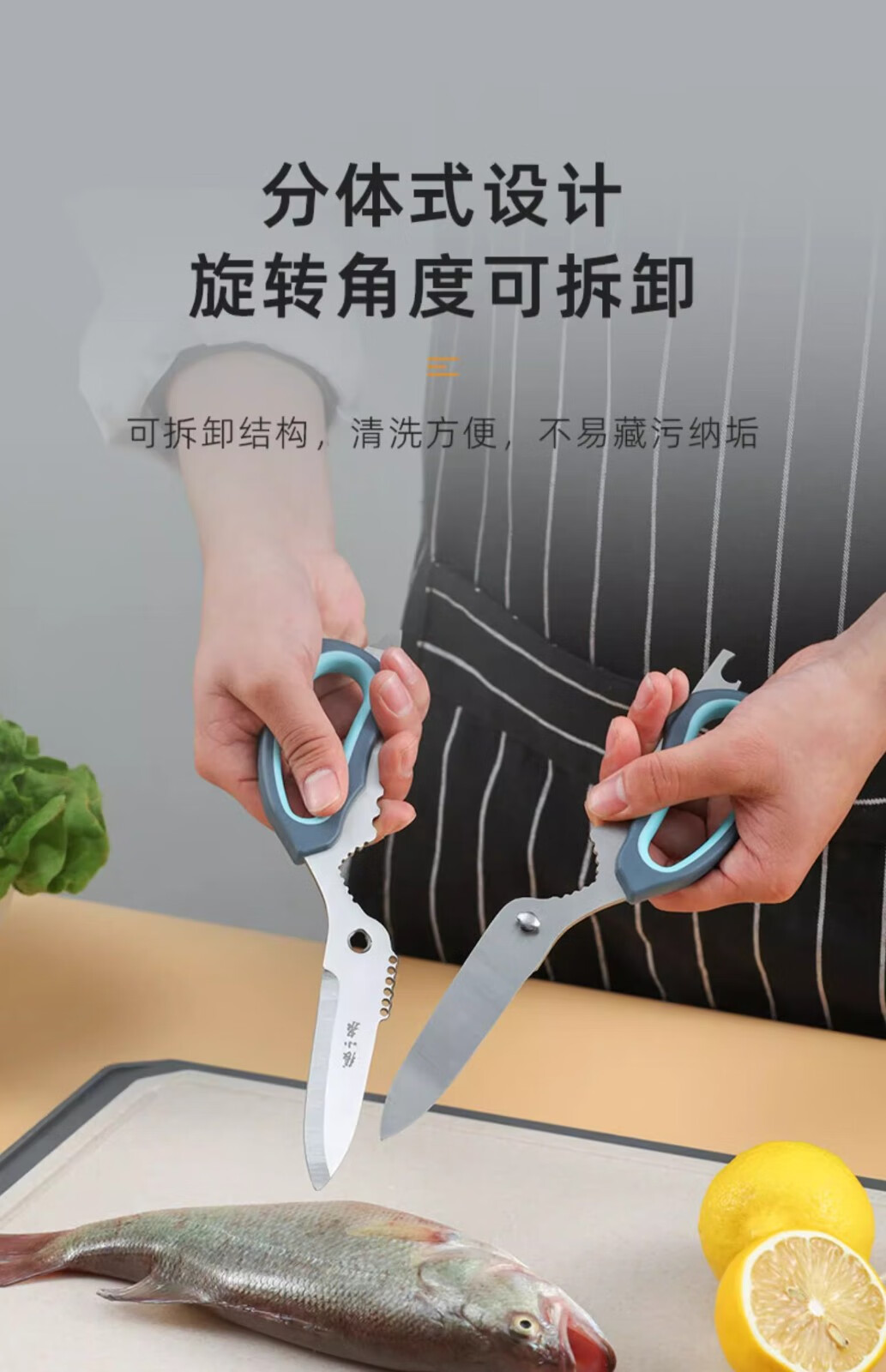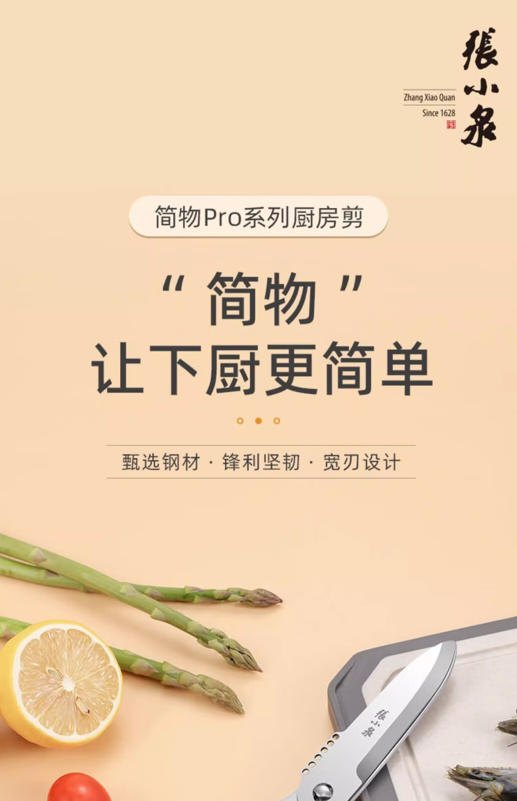 张小泉厨房剪刀不锈钢剪子锋利耐用防滑多功能加厚刮鱼鳞剪菜剪肉剪骨头