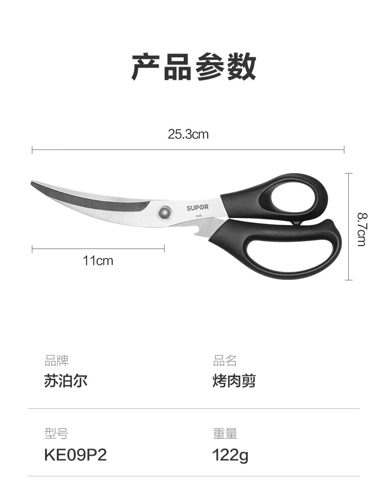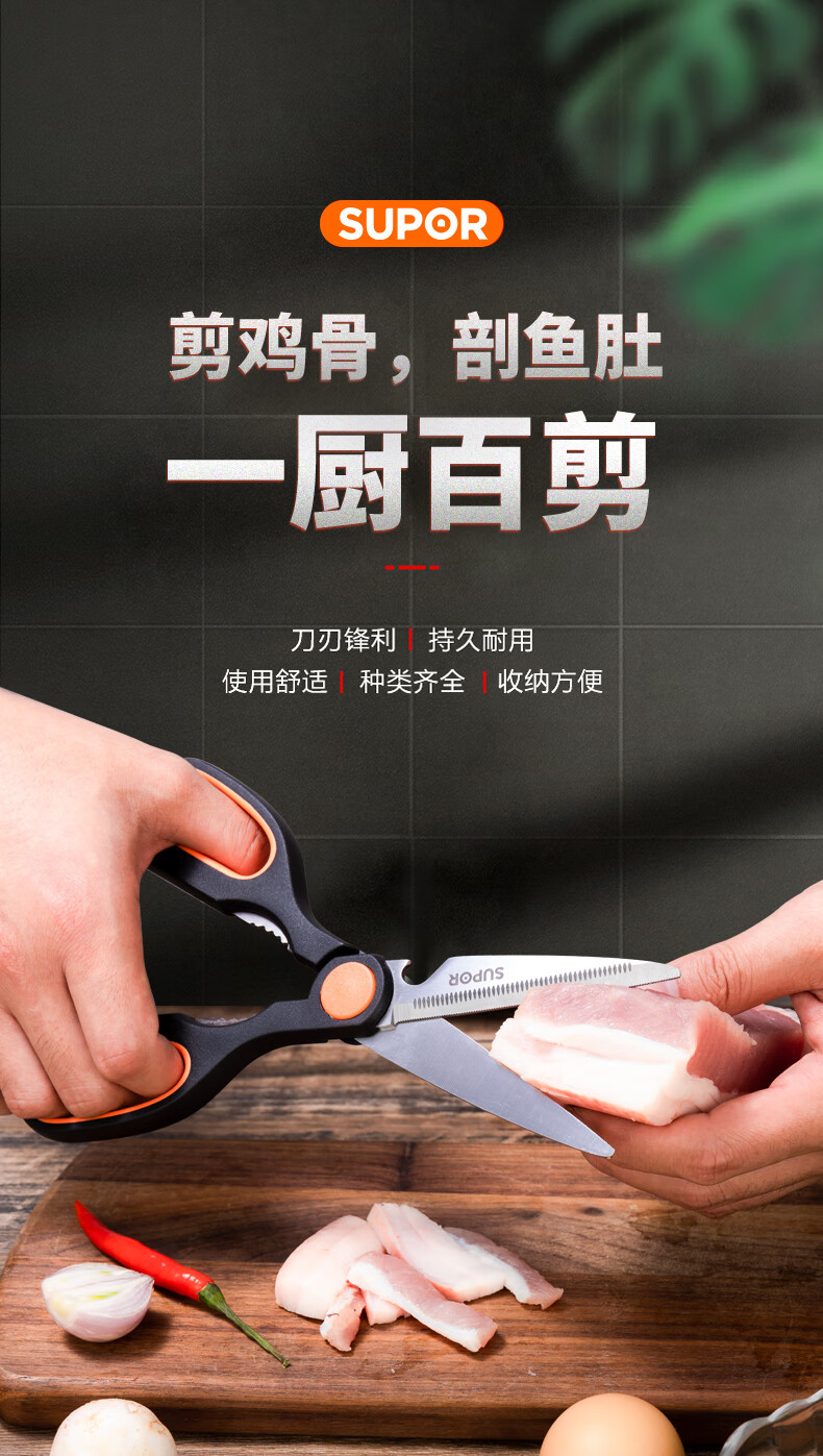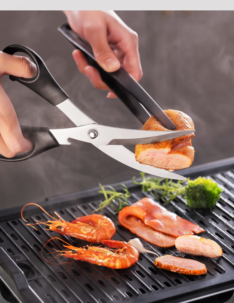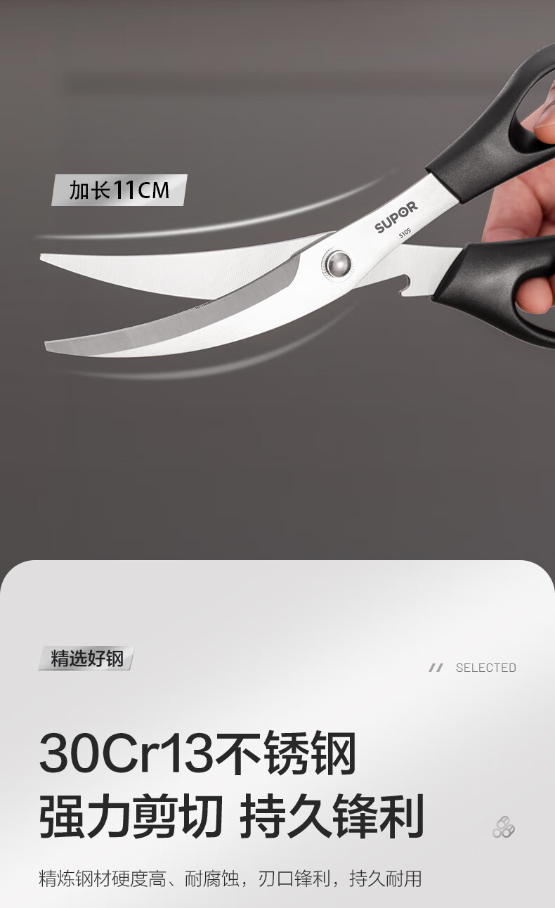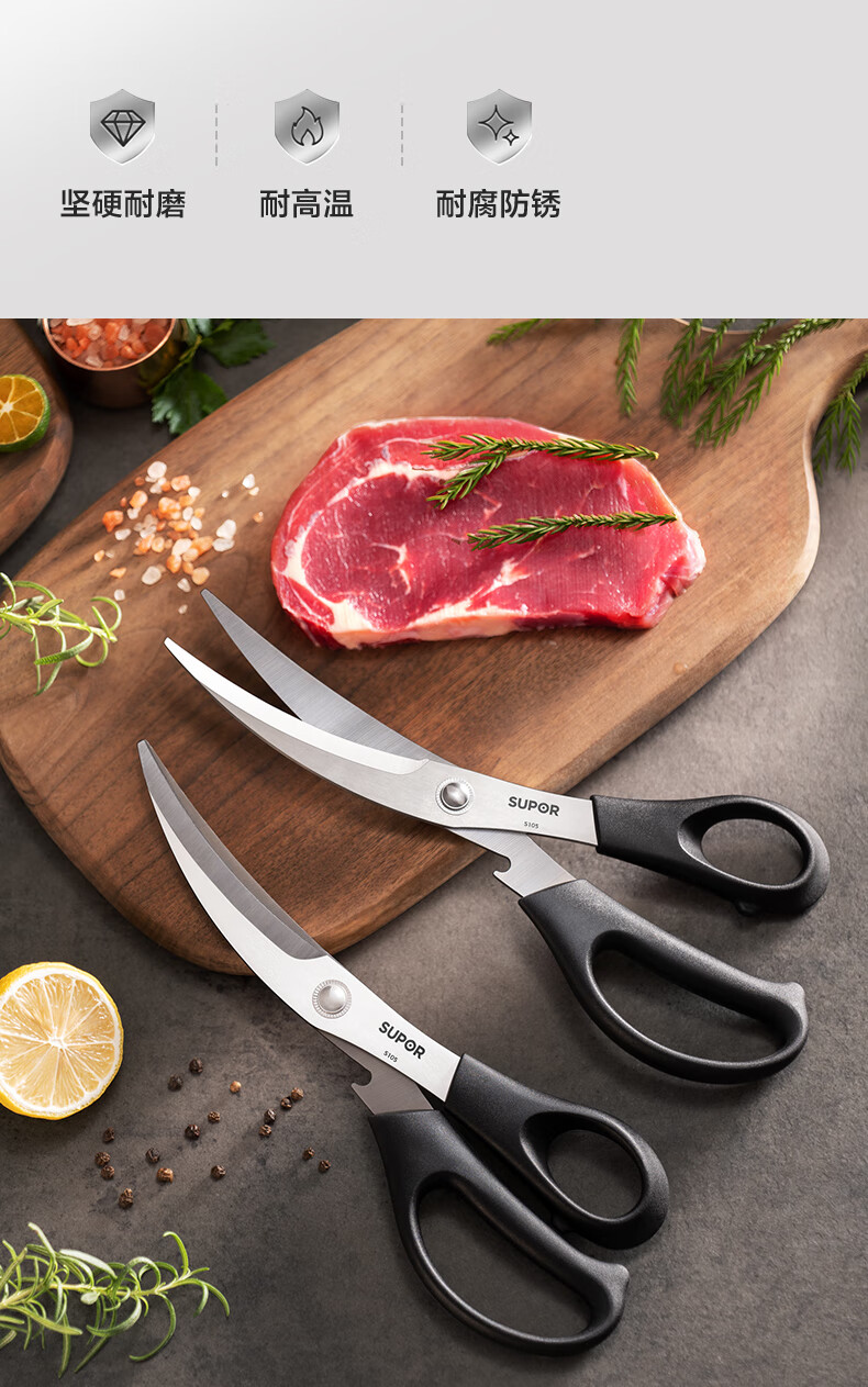 SUPOR Ciseaux de Cuisine, Ciseaux de Barbecue, Pinces à Noix Multi-usages, Ciseaux de Cuisine Multi-usages en Os de Poulet, Ouvre-bouteille Domestique, Ouvre-boîte, Ciseaux de Barbecue à Lame Courbée