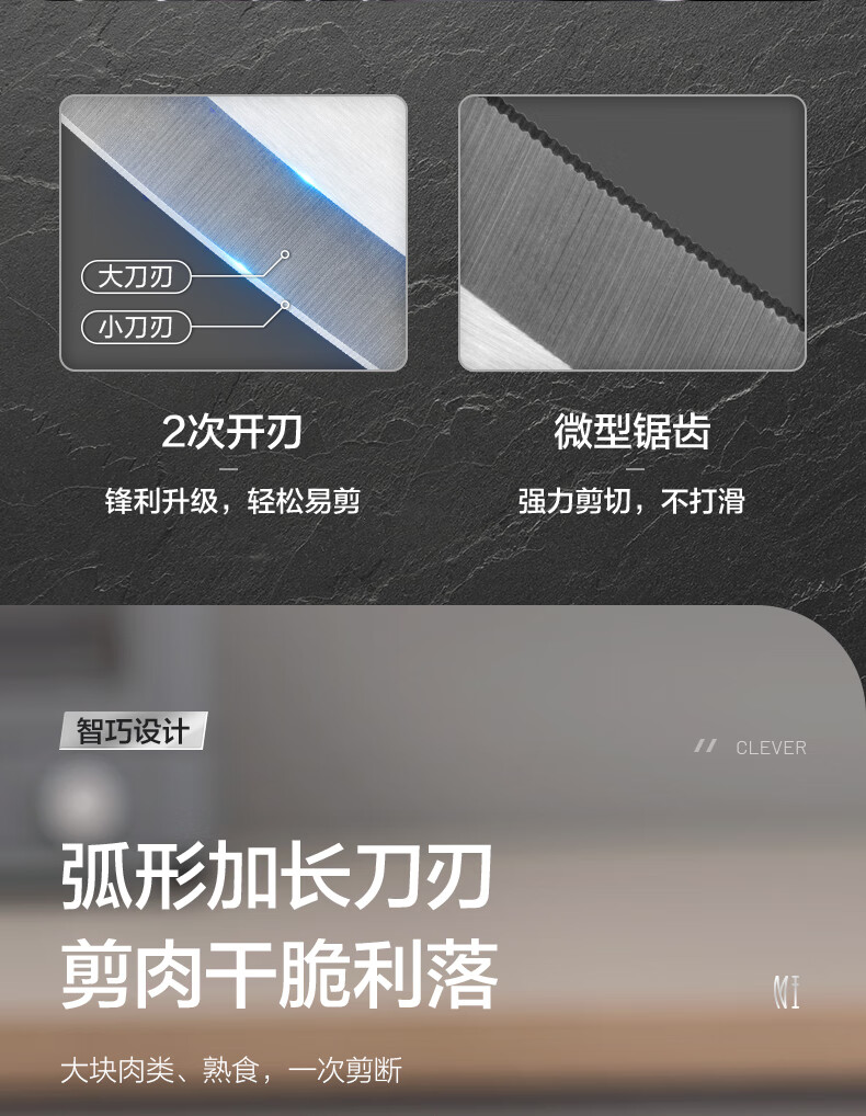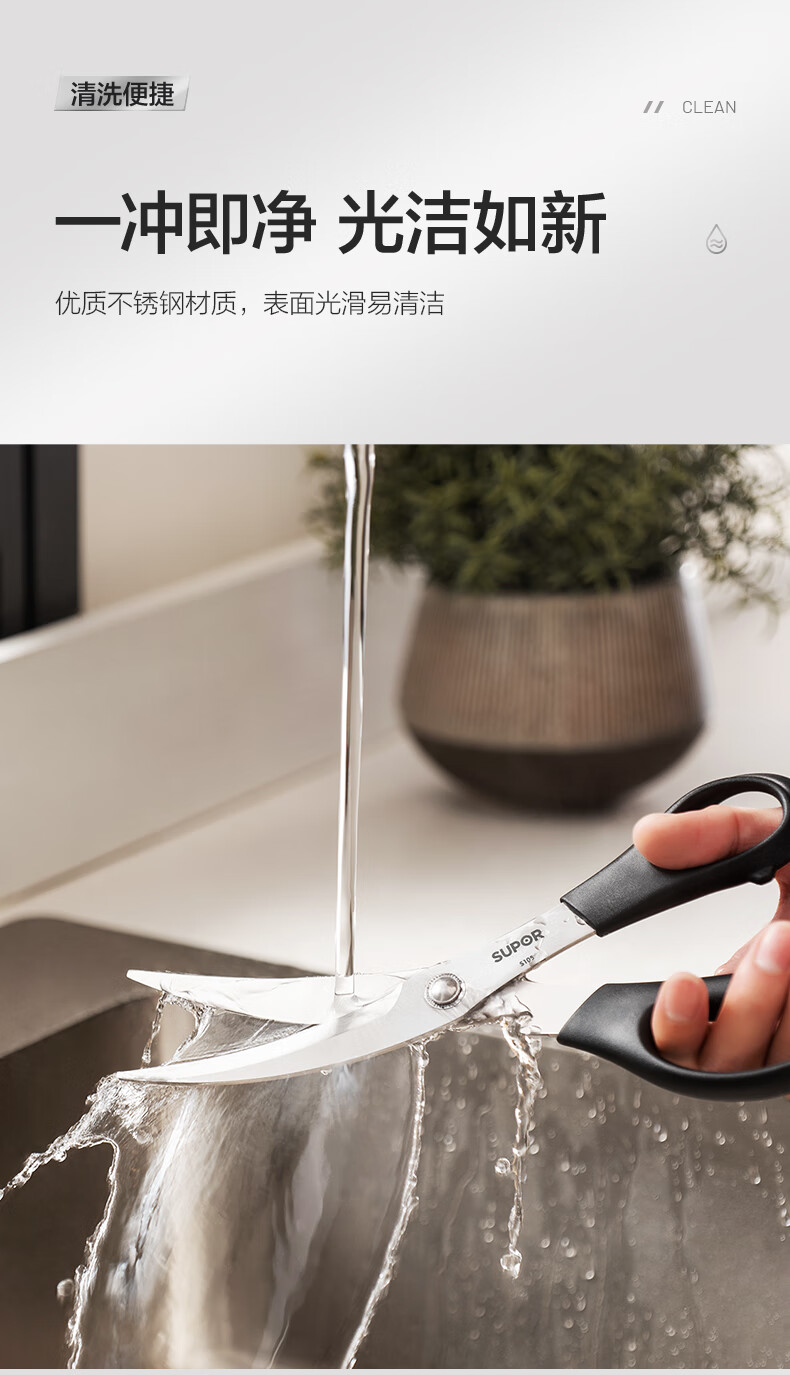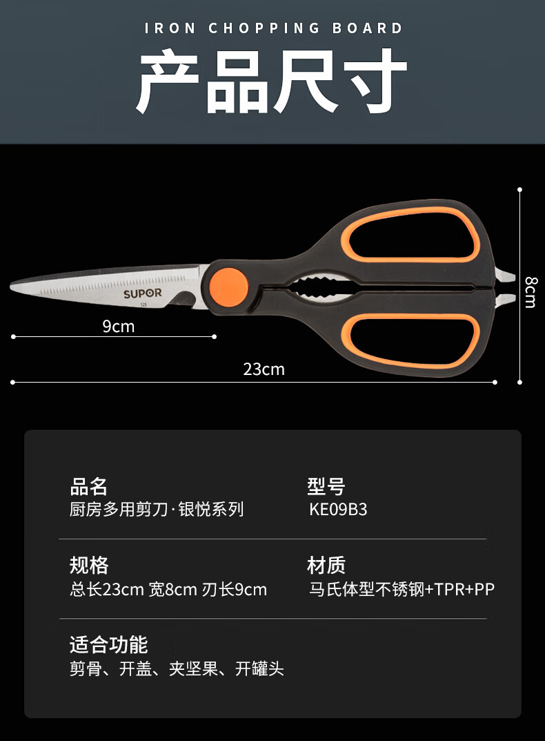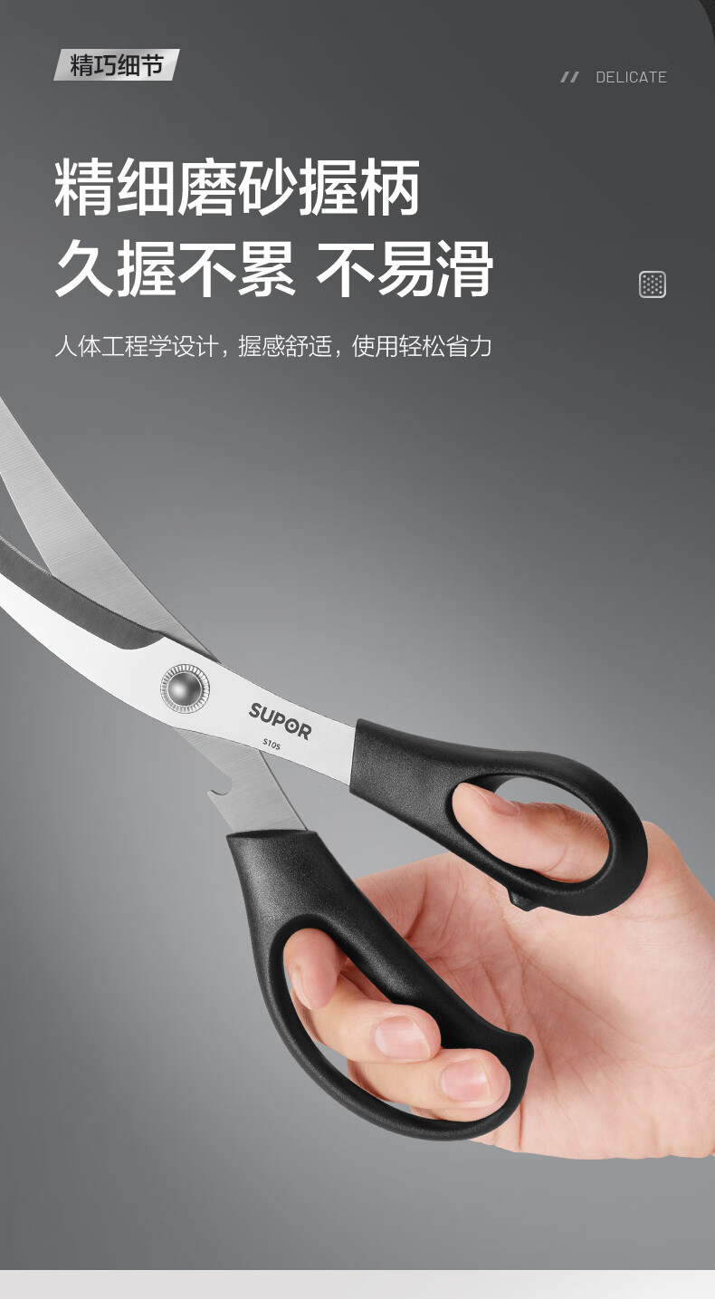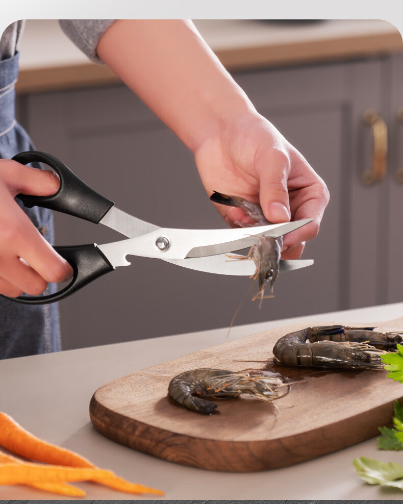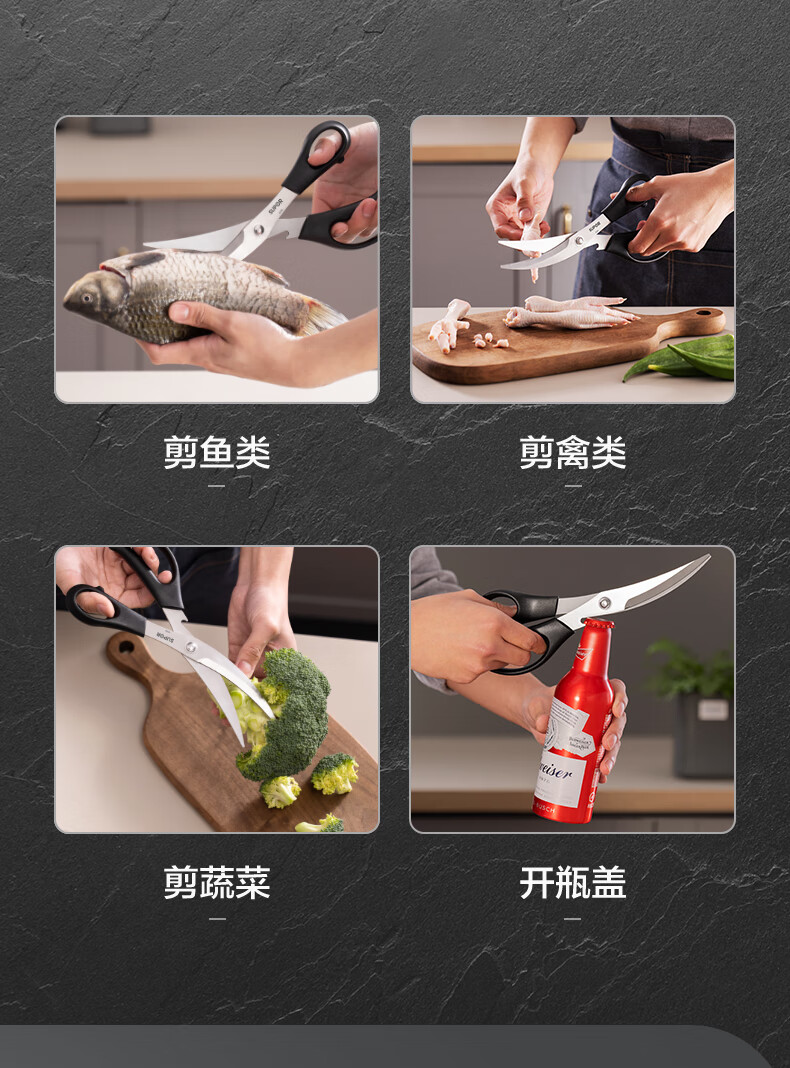 SUPOR Ciseaux de Cuisine, Ciseaux de Barbecue, Pinces à Noix Multi-usages, Ciseaux de Cuisine Multi-usages en Os de Poulet, Ouvre-bouteille Domestique, Ouvre-boîte, Ciseaux de Barbecue à Lame Courbée