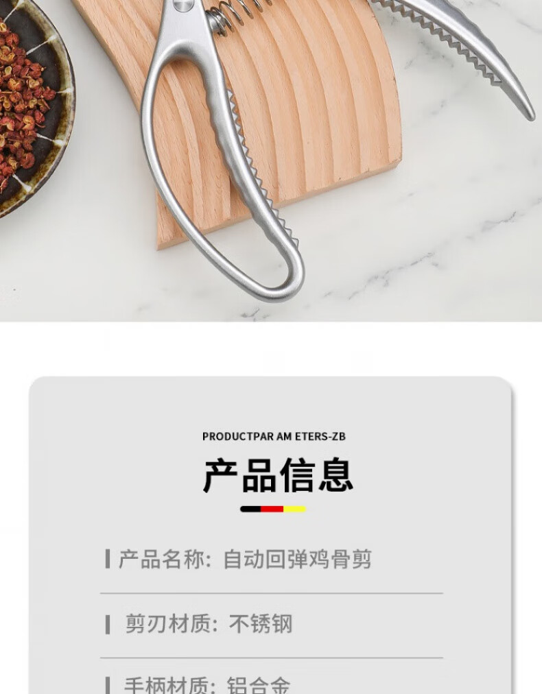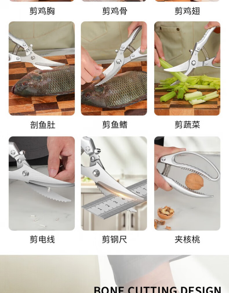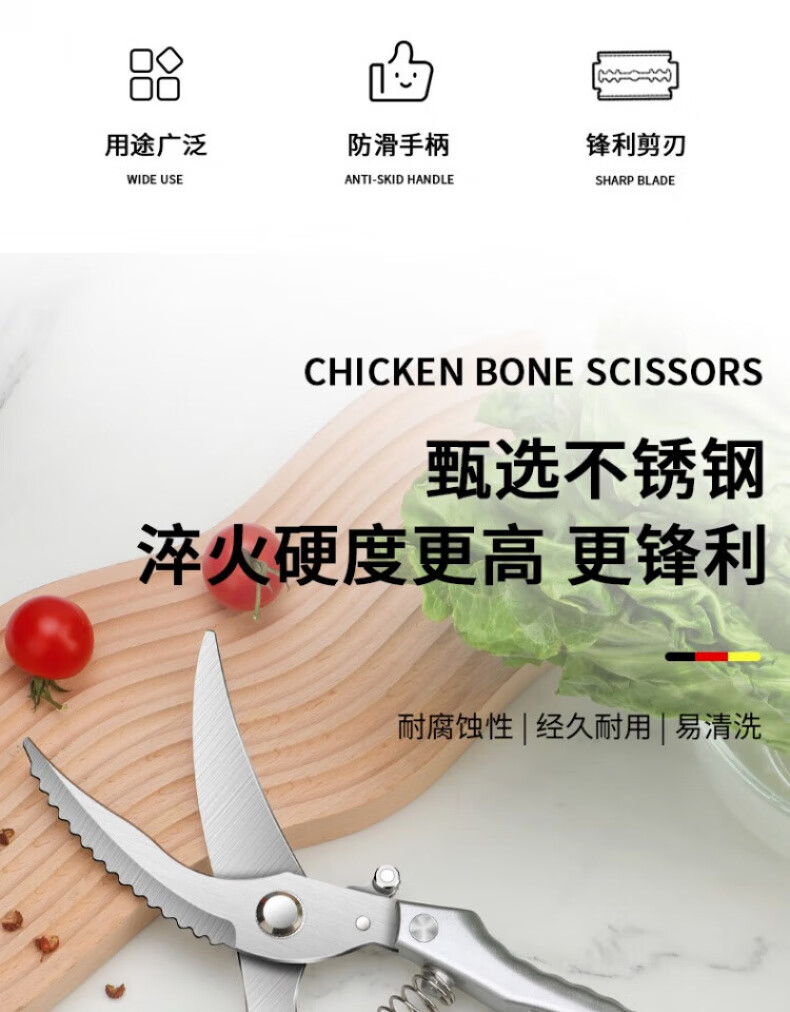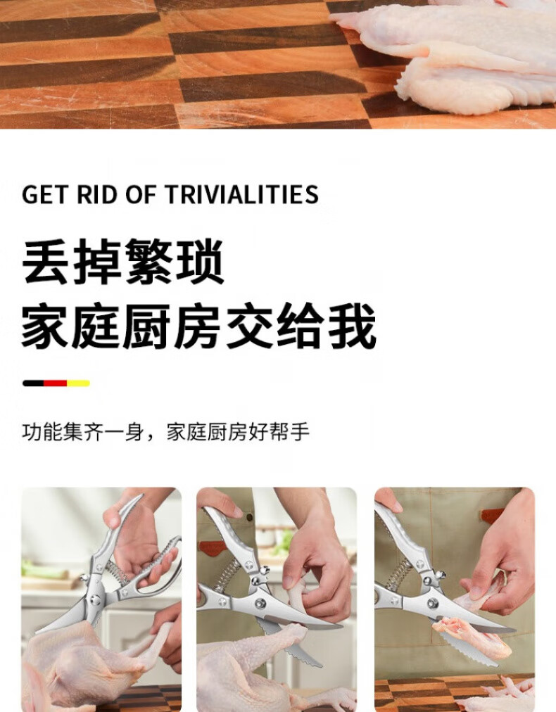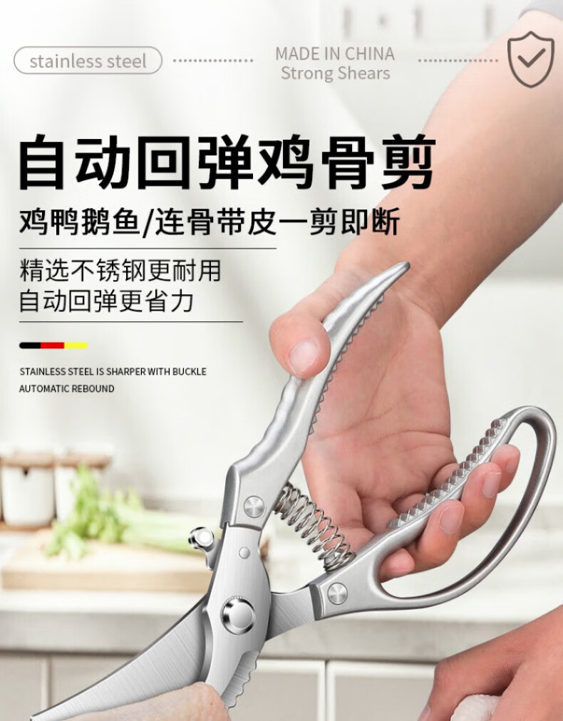 煦凛【德国】厨房剪刀强力鸡骨剪多功能家用不锈钢剪厨用剪鸡鸭鹅骨头 【德国精工】多功能强力鸡骨剪+全钢水果刀