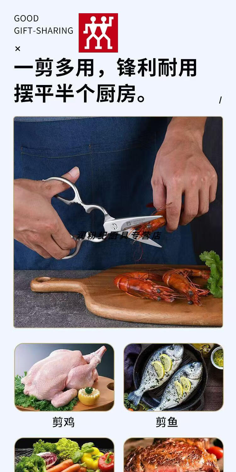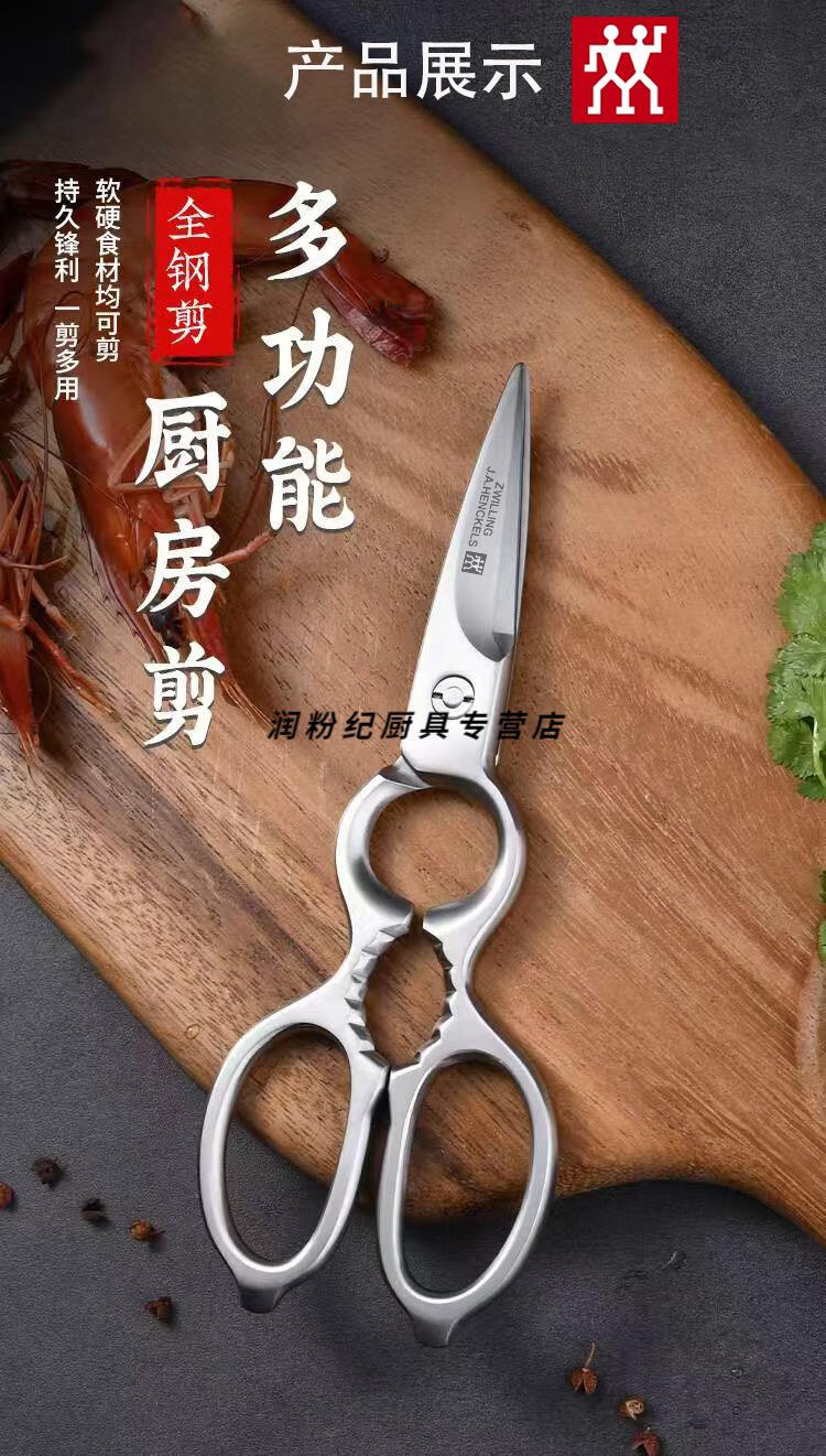 双立人德国进口品质全不锈钢厨房剪刀强力剪刀剪肉杀鱼食品剪多功能剪 加厚全钢实心剪