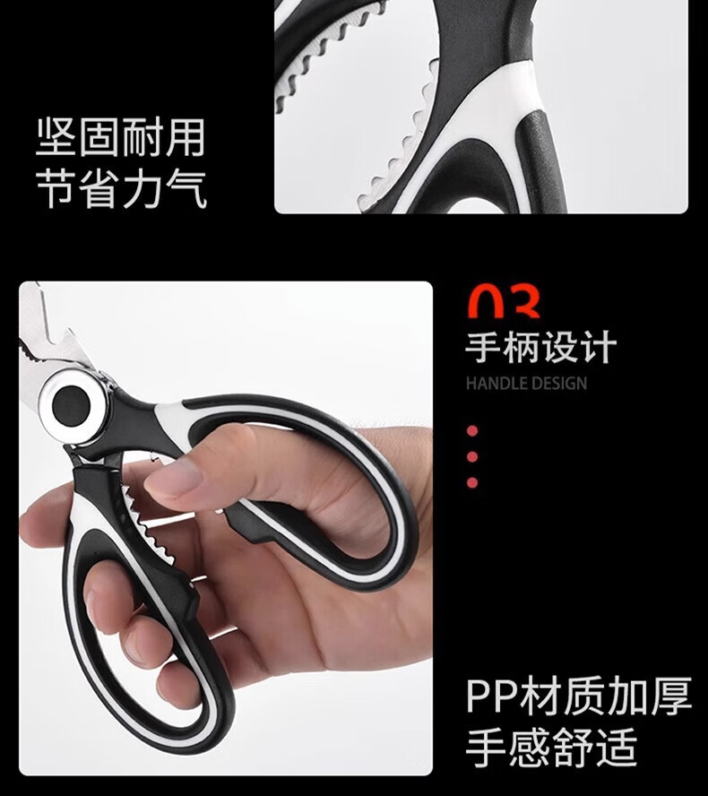 厨房剪刀厨用剪刀鸡骨剪强力剪骨刀烤肉剪刀多功能剪刀熊猫辅食剪 【锋利升级】鸡骨剪黑色1把