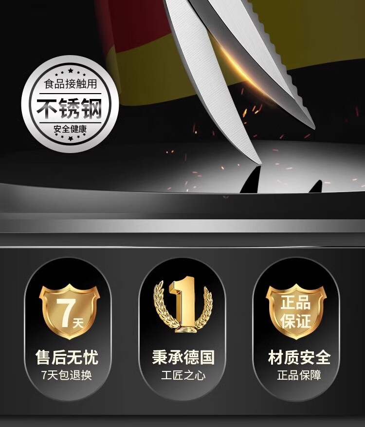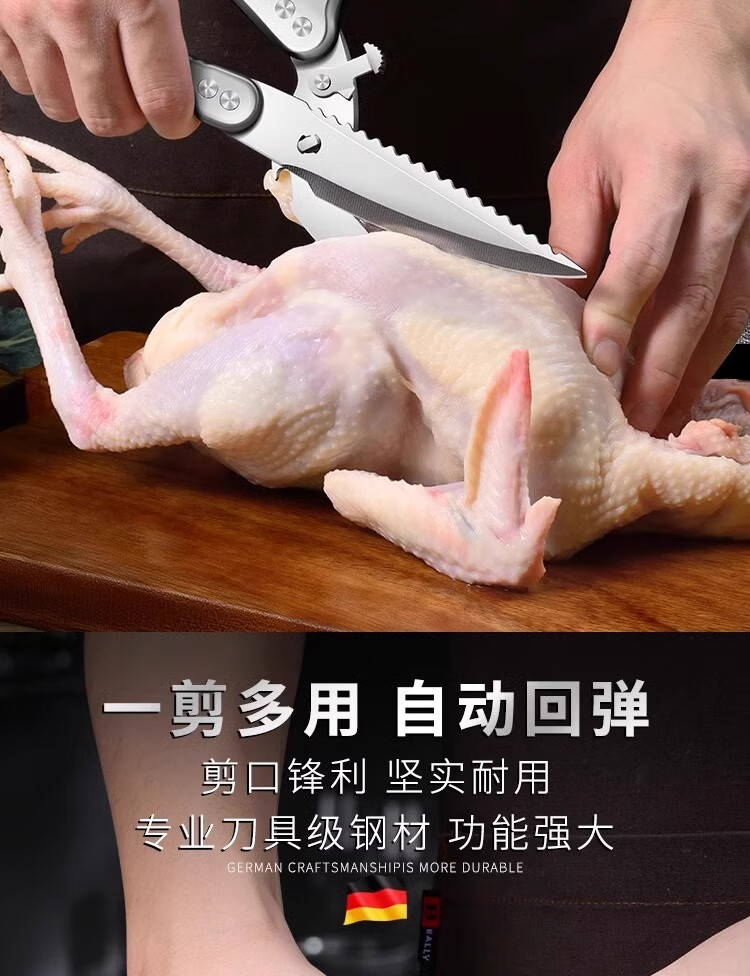 Xulin Deutsche Küchenschere, Hühnerknochenschere, Haushaltsknochenschere, Fischschere, Hühnerschere, spezielle multifunktionale Schere in Lebensmittelqualität, deutsche Hühnerknochenschere, rutschfest, superscharf, spezialisiert auf harte Knochen – Schneiden von Huhn und Fisch.