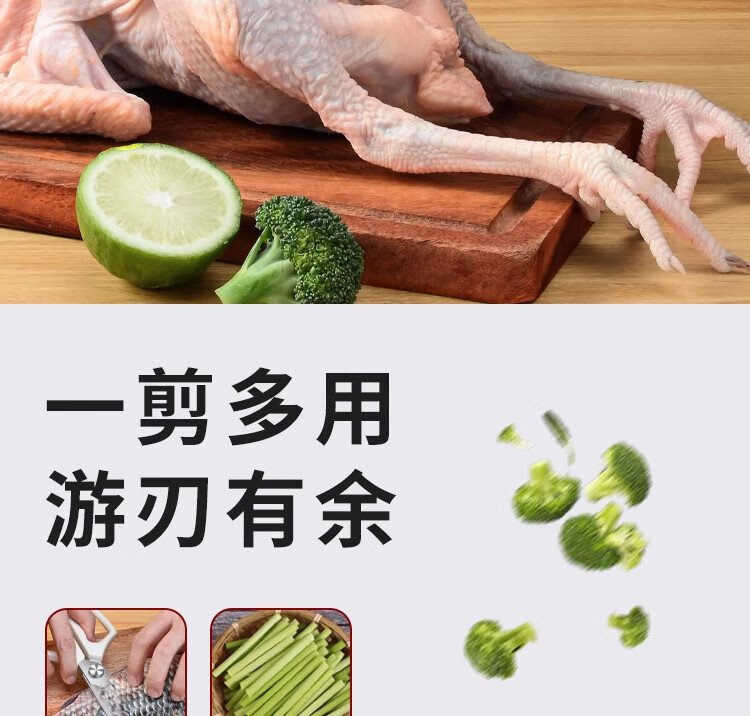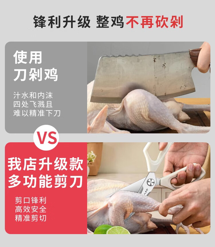 Shibazi makes kitchen scissors, high hardness and sharp chicken, duck and goose bone scissors, detachable household stainless steel barbecue scissors, detachable kitchen scissors