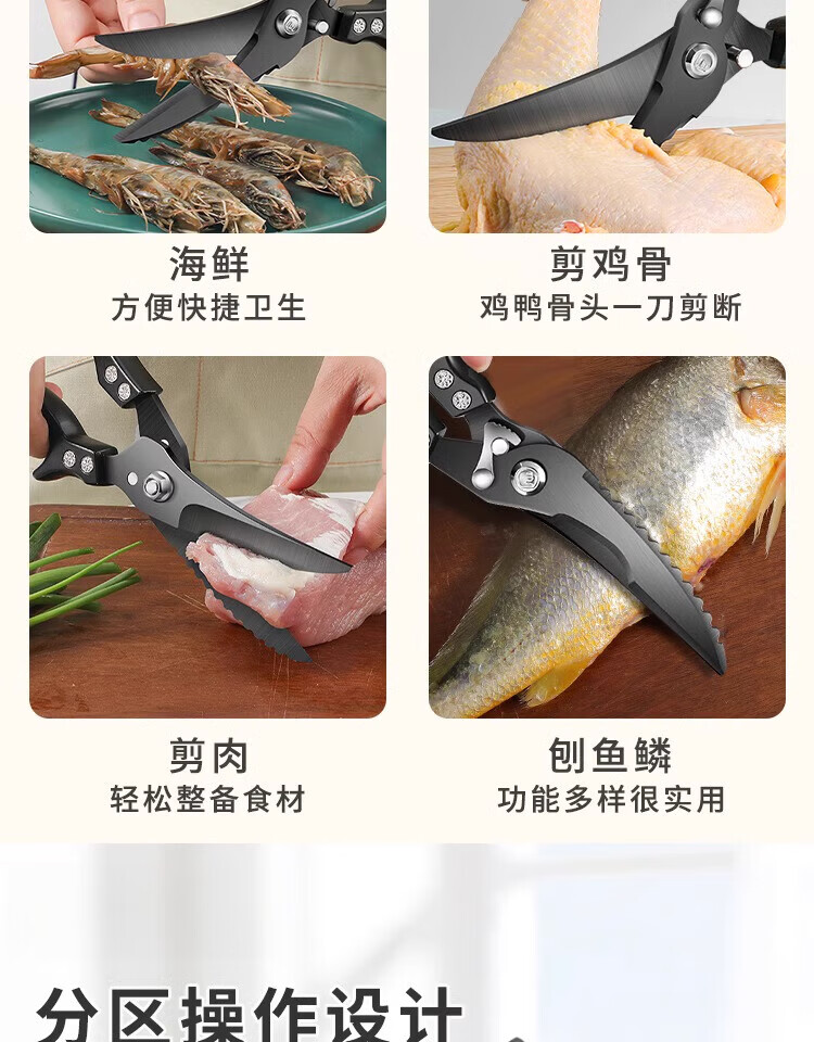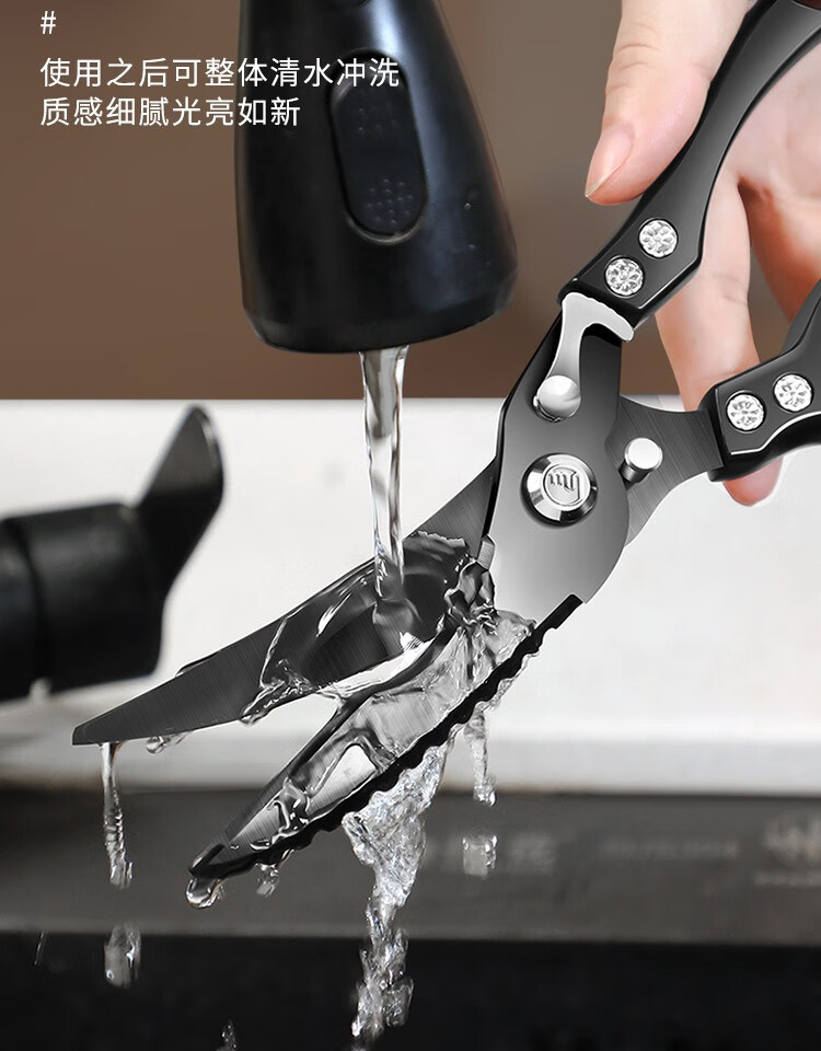 GERTHRON德国厨房剪刀强力鸡骨剪黑钛多功能剪鸡鸭鹅肉骨头专用大剪子 【升级特厚 双重防锈】黑钛鸡骨剪+磨刀器