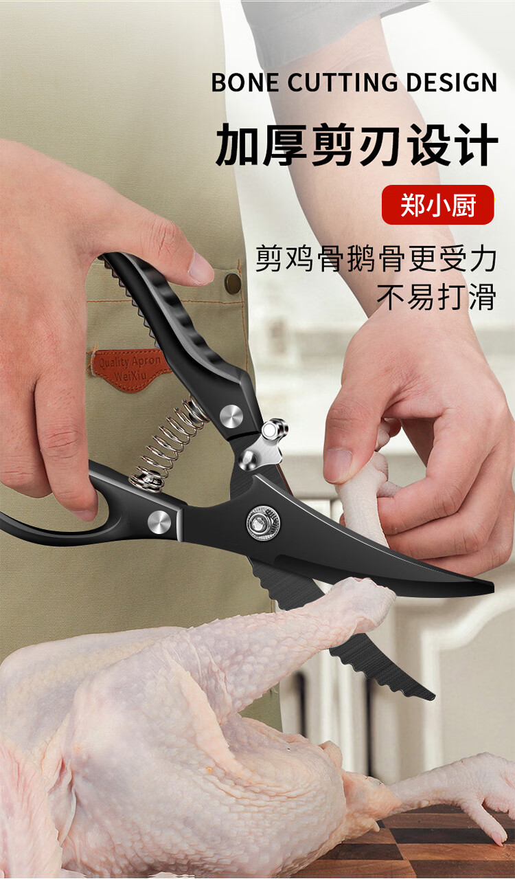 Zheng Xiaochu Ciseaux de cuisine allemands Zhang Xiao Ciseaux de barbecue à carapace molle en acier inoxydable pour tuer les poissons Ciseaux à os de poulet, de canard et d'oie Ciseaux à os Mise à niveau ordinaire Épaissie Printemps Argent Ciseaux à os de poulet puissants