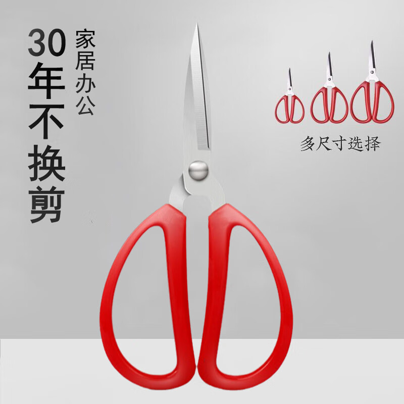QLISHE strongman scissors household stainless steel scissors powerful kitchen special scissors multifunctional tailor scissors paper scissors large scissors cutting 08A large red gray scissors one pack
