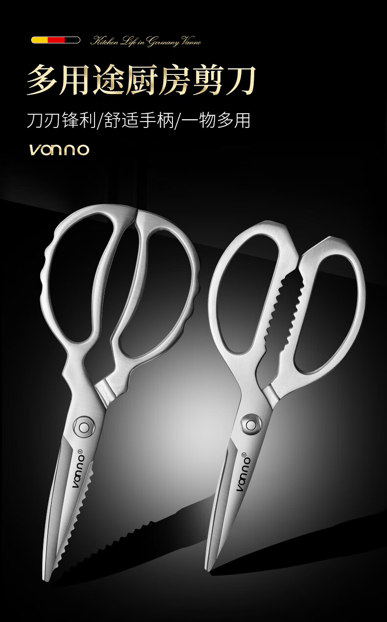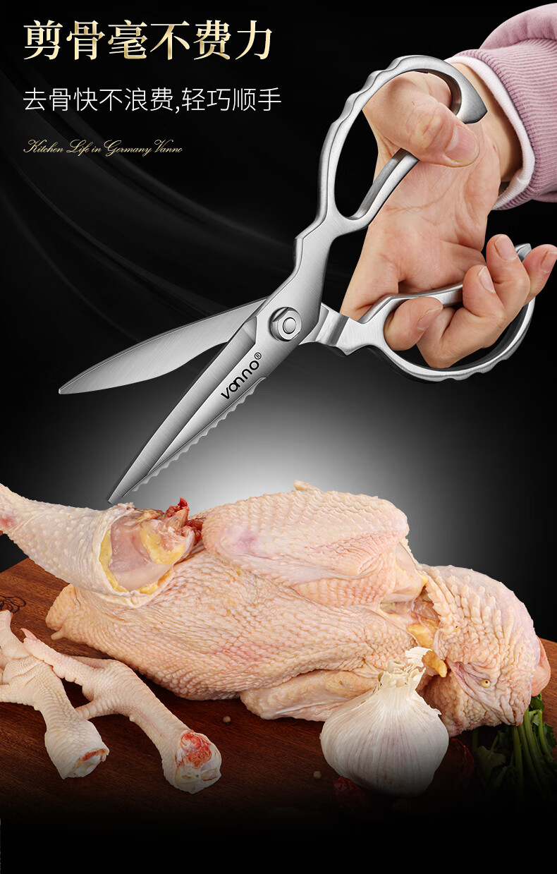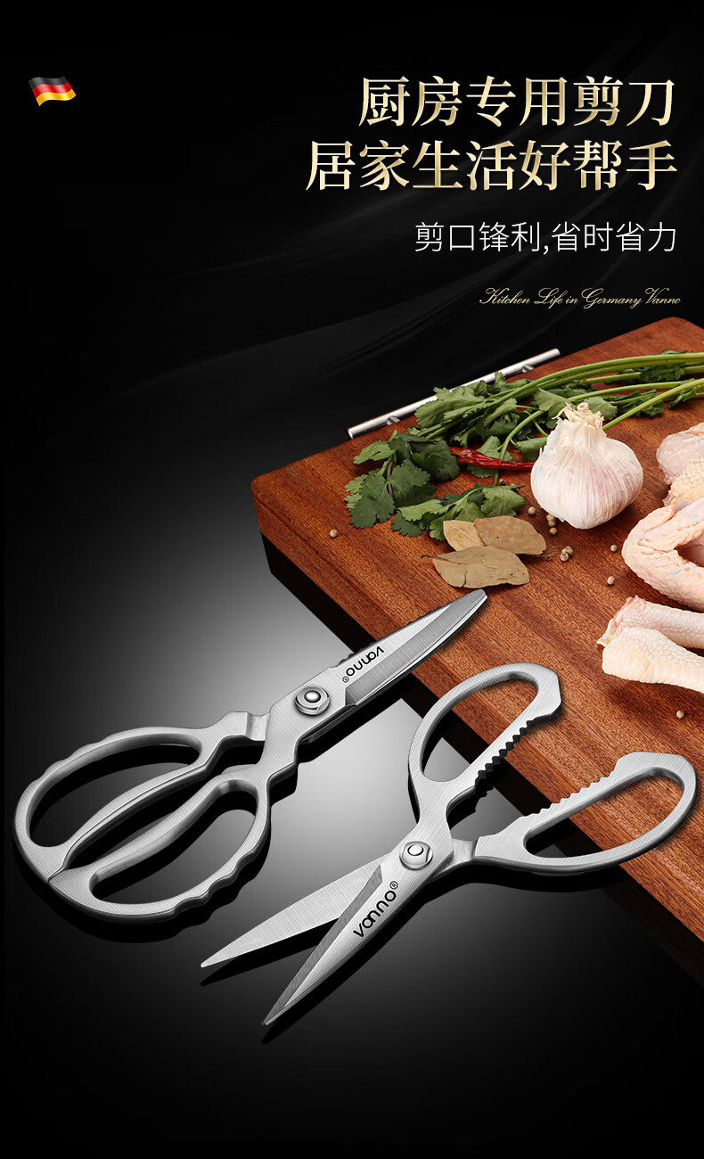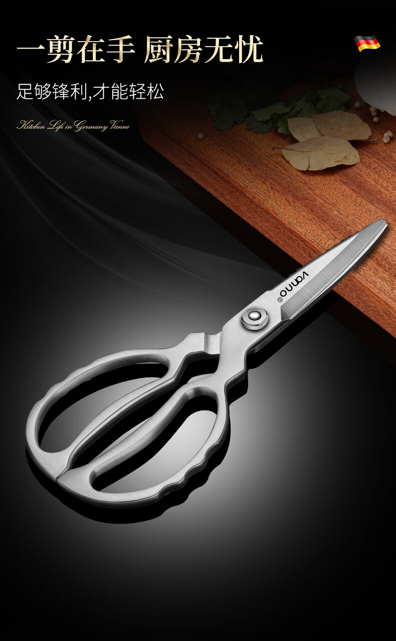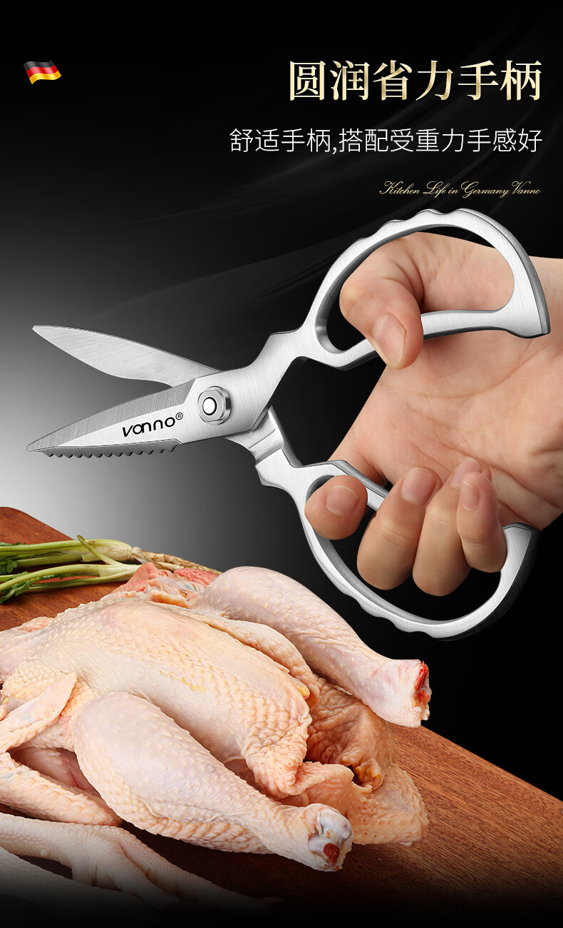 Vanno Ciseaux allemands en acier inoxydable pour la cuisine, ciseaux multifonctions solides en os de poulet, ciseaux ménagers pour couper les légumes, tuer le poisson, ciseaux pour barbecue, ciseaux de cuisine multifonctions (petite taille), modèle standard