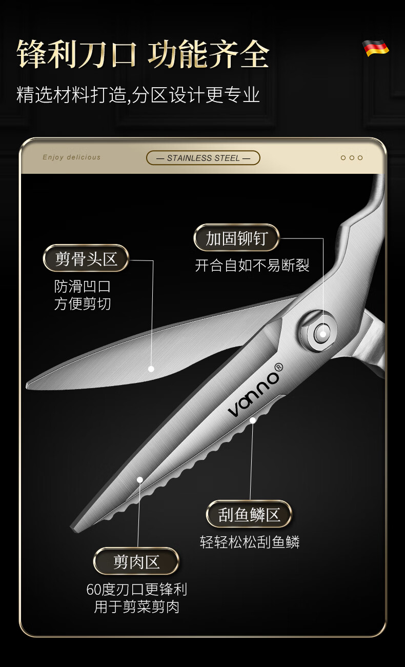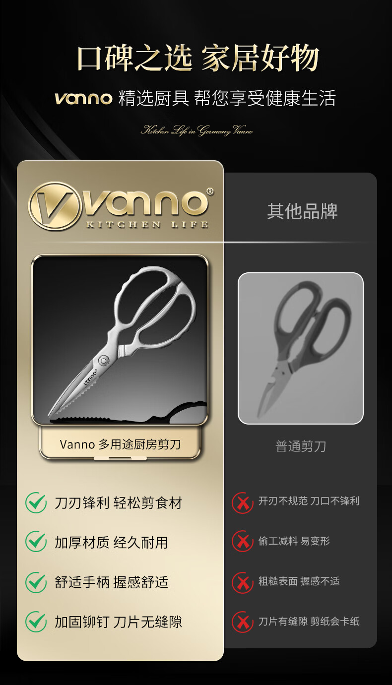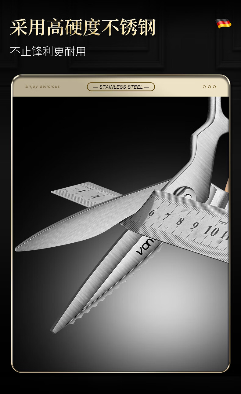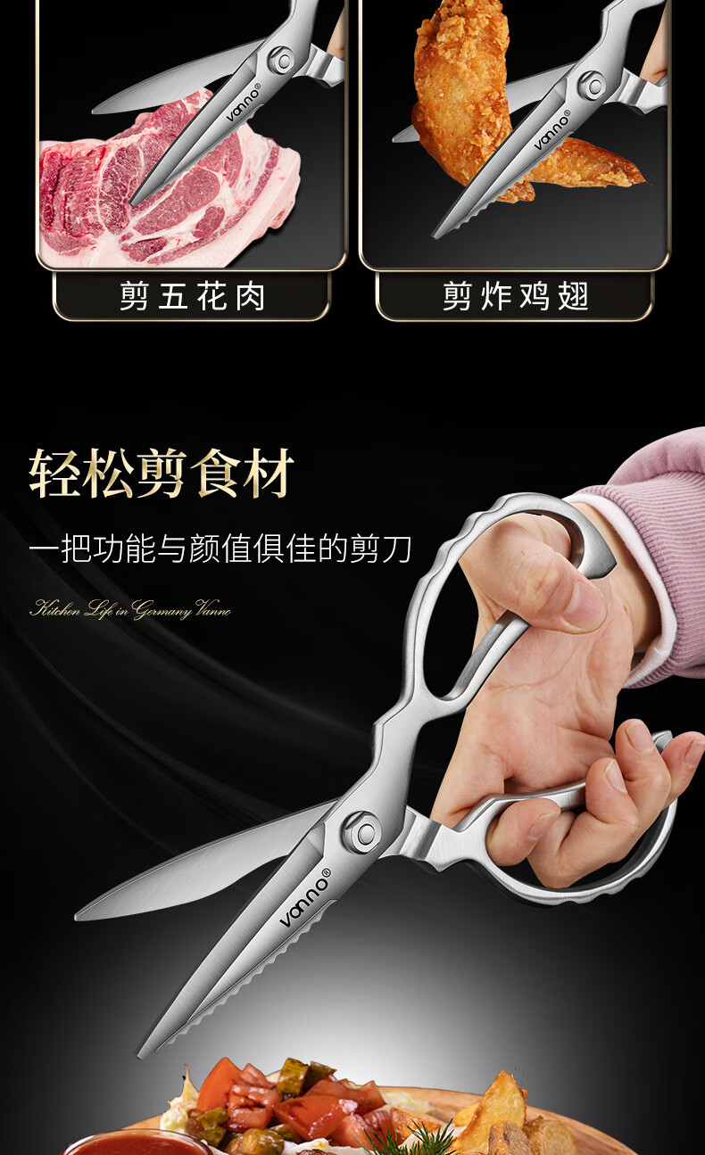 Vanno Ciseaux allemands en acier inoxydable pour la cuisine, ciseaux multifonctions solides en os de poulet, ciseaux ménagers pour couper les légumes, tuer le poisson, ciseaux pour barbecue, ciseaux de cuisine multifonctions (petite taille), modèle standard
