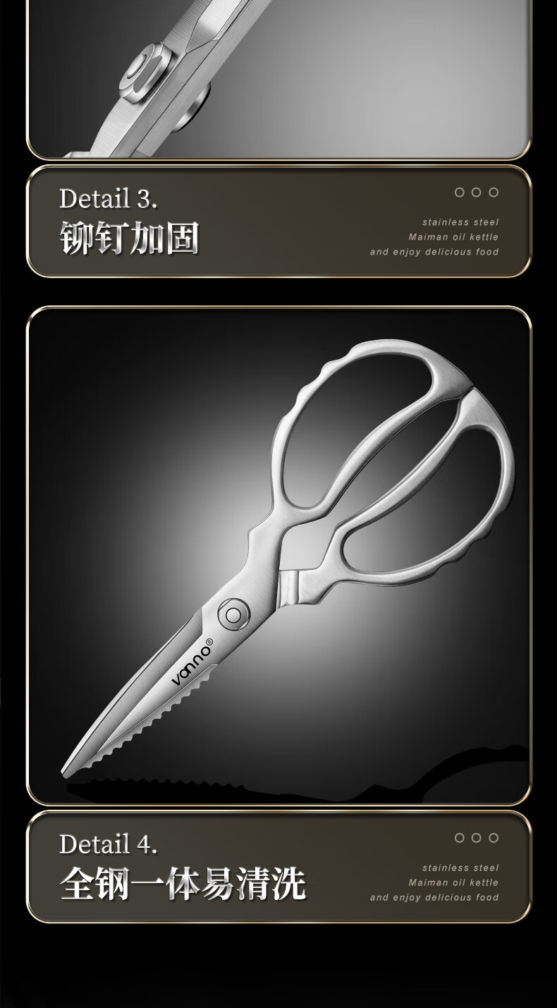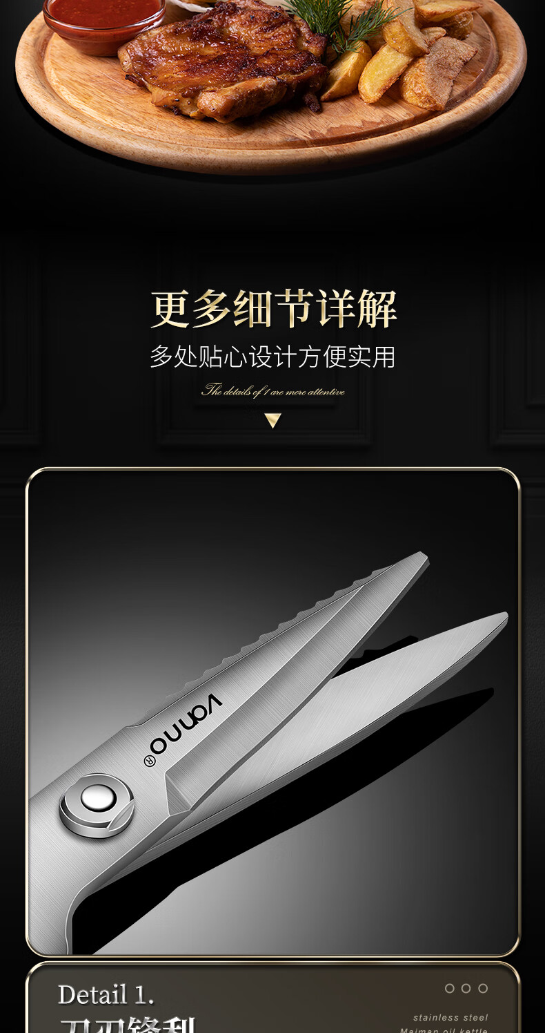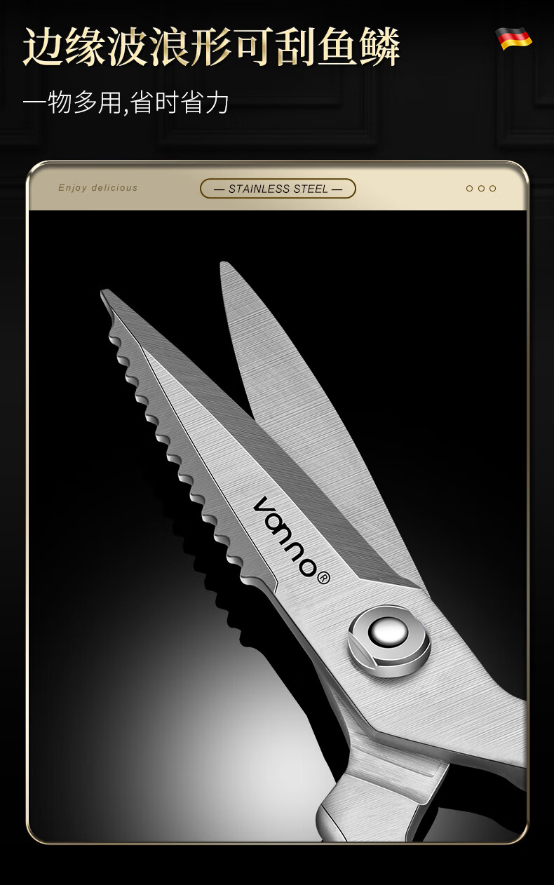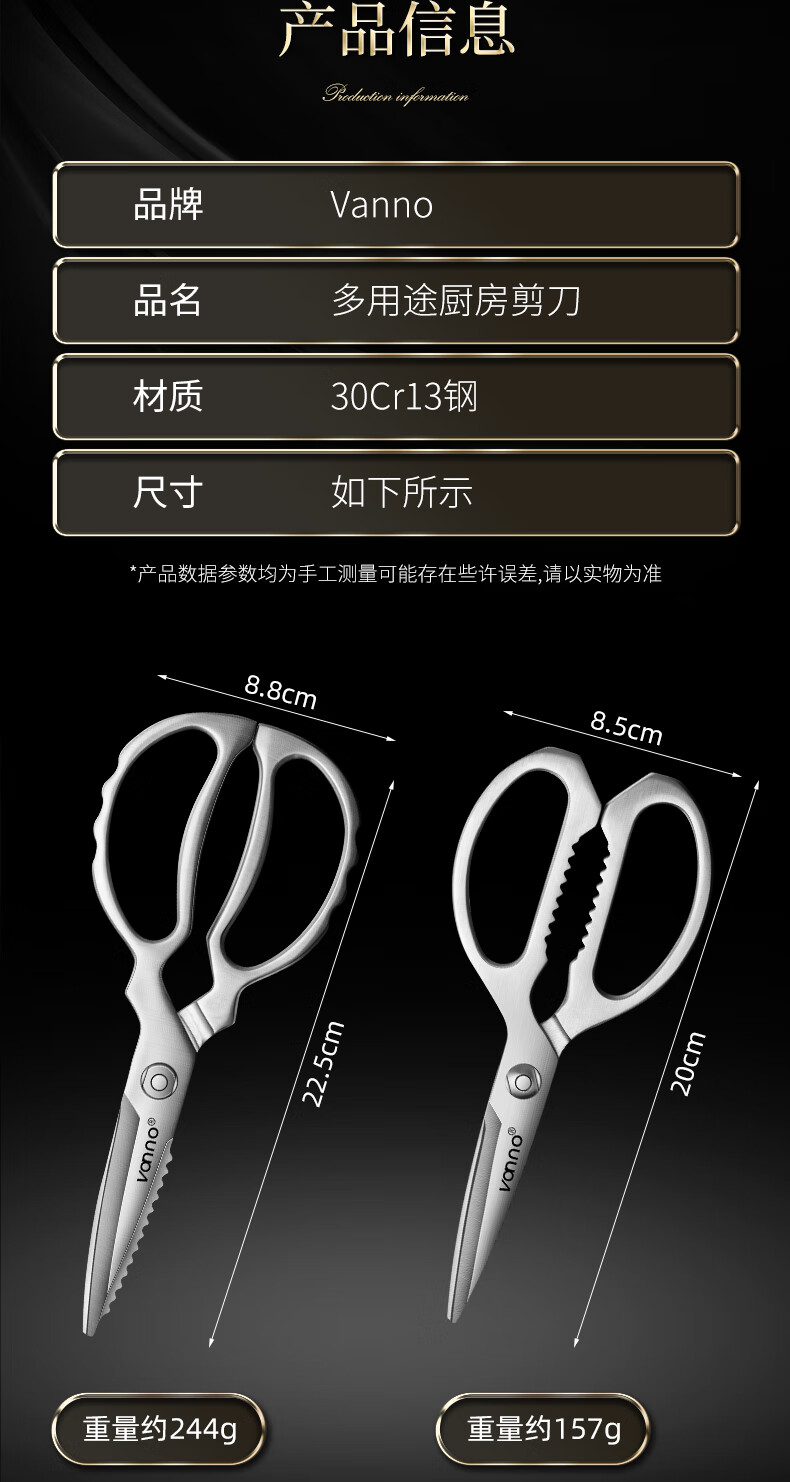 Vanno Ciseaux allemands en acier inoxydable pour la cuisine, ciseaux multifonctions solides en os de poulet, ciseaux ménagers pour couper les légumes, tuer le poisson, ciseaux pour barbecue, ciseaux de cuisine multifonctions (petite taille), modèle standard
