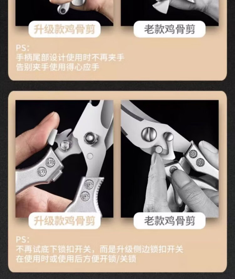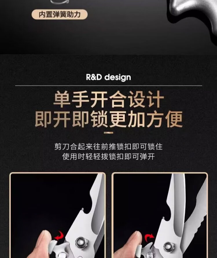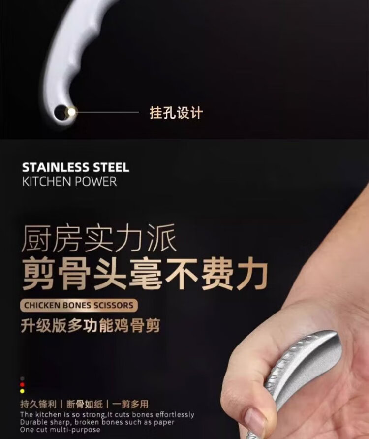Xiangxiang Küchenschere, deutsche starke Hähnchenknochenschere aus Edelstahl, speziell zum Schneiden von Knochen, Lebensmittelqualität 304, multifunktionale D-Küche, starke Hähnchenknochenschere aus Edelstahl, eine Packung