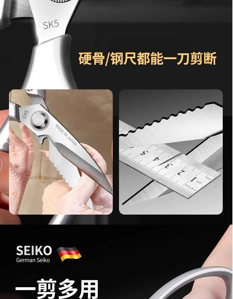 Scissors for kitchen household multifunctional strong chicken bone cutter softshell turtle bone stainless steel scissors multifunctional fish killing scissors scissors