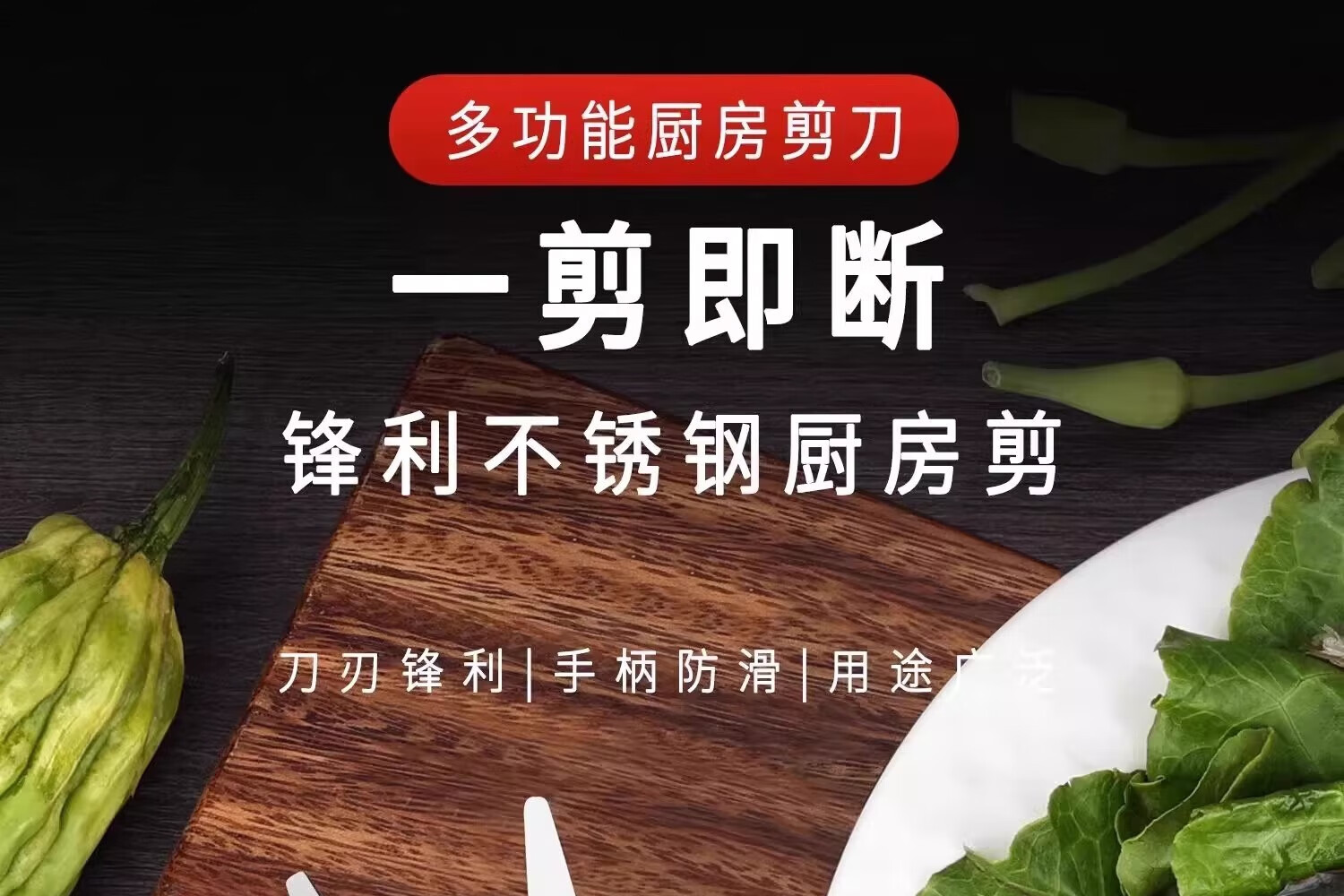 Chuangmu Workshop Kitchen Scissors High Hardness Sharp Household Food Grade Stainless Steel Strong Chicken Bone Scissors Special for Cutting Meat and Bones Scissors All Steel Strong Scissors