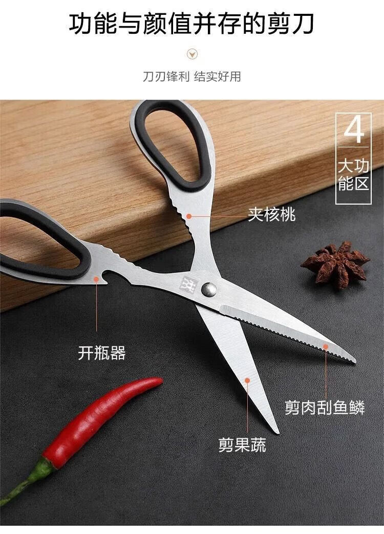 ZWILLING German imported stainless steel food scissors multi-functional household kitchen strong chicken bone scissors kitchen scissors stainless steel scissors 2 pairs length 17.99CM*width 7CM
