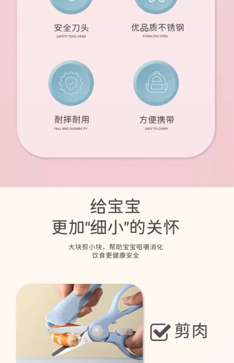 JCZS Deutsche Marke Kinder Nahrungsergänzungsmittel Schere Clip Baby Spezialnahrung Edelstahl Werkzeug tragbar kann Fleisch schneiden Blau - Edelstahlschere mit Schutzhülle