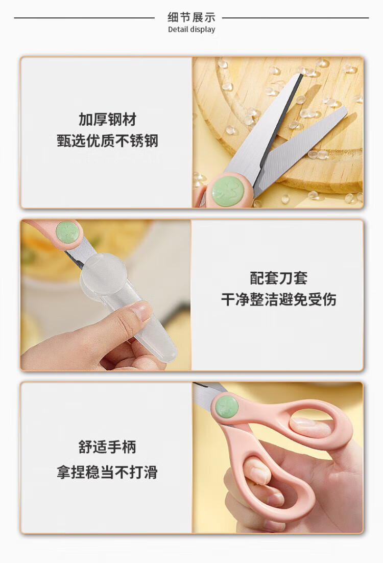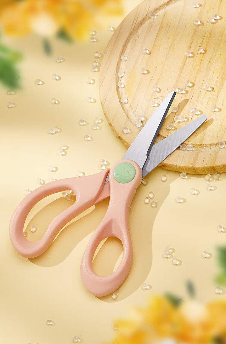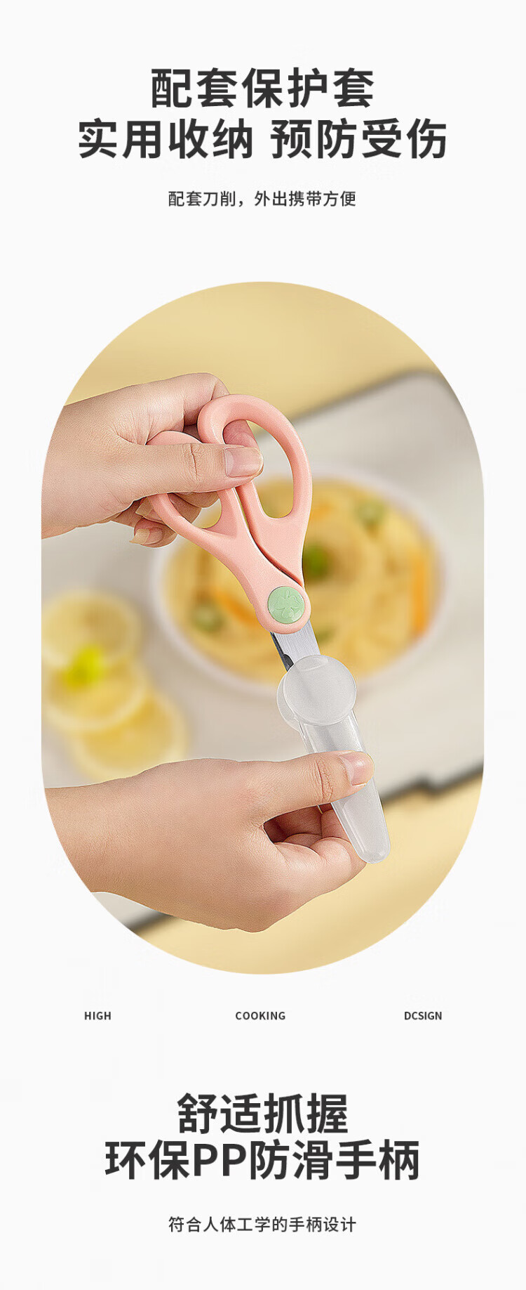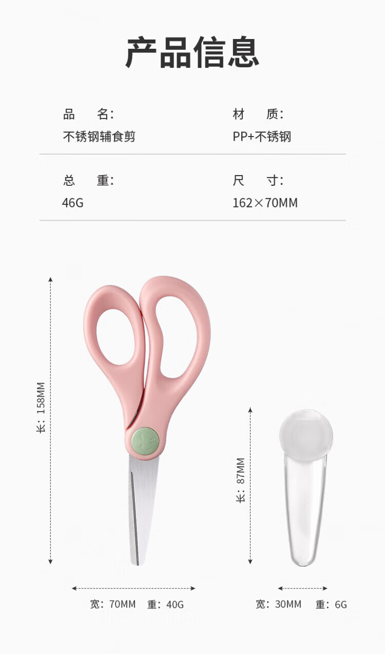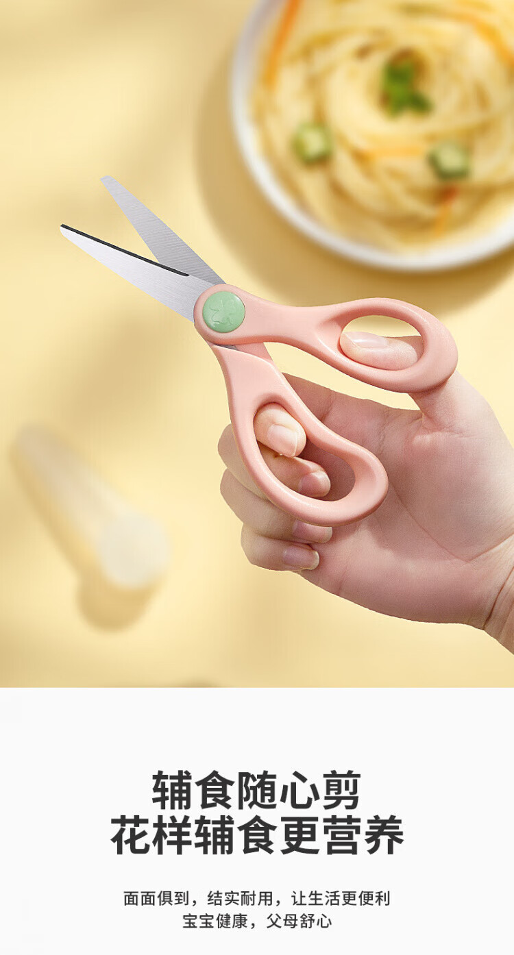 Ai style baby food-grade scissors, food-grade stainless steel, can be cut and stored, large and small handles, pink