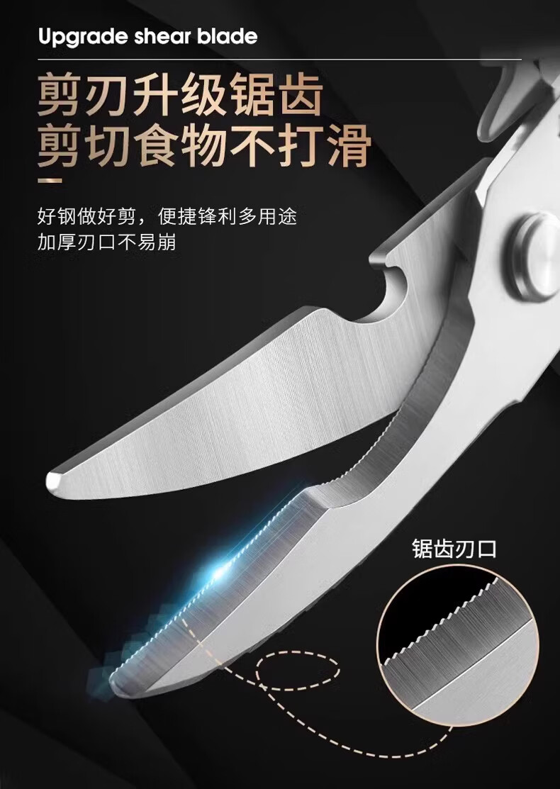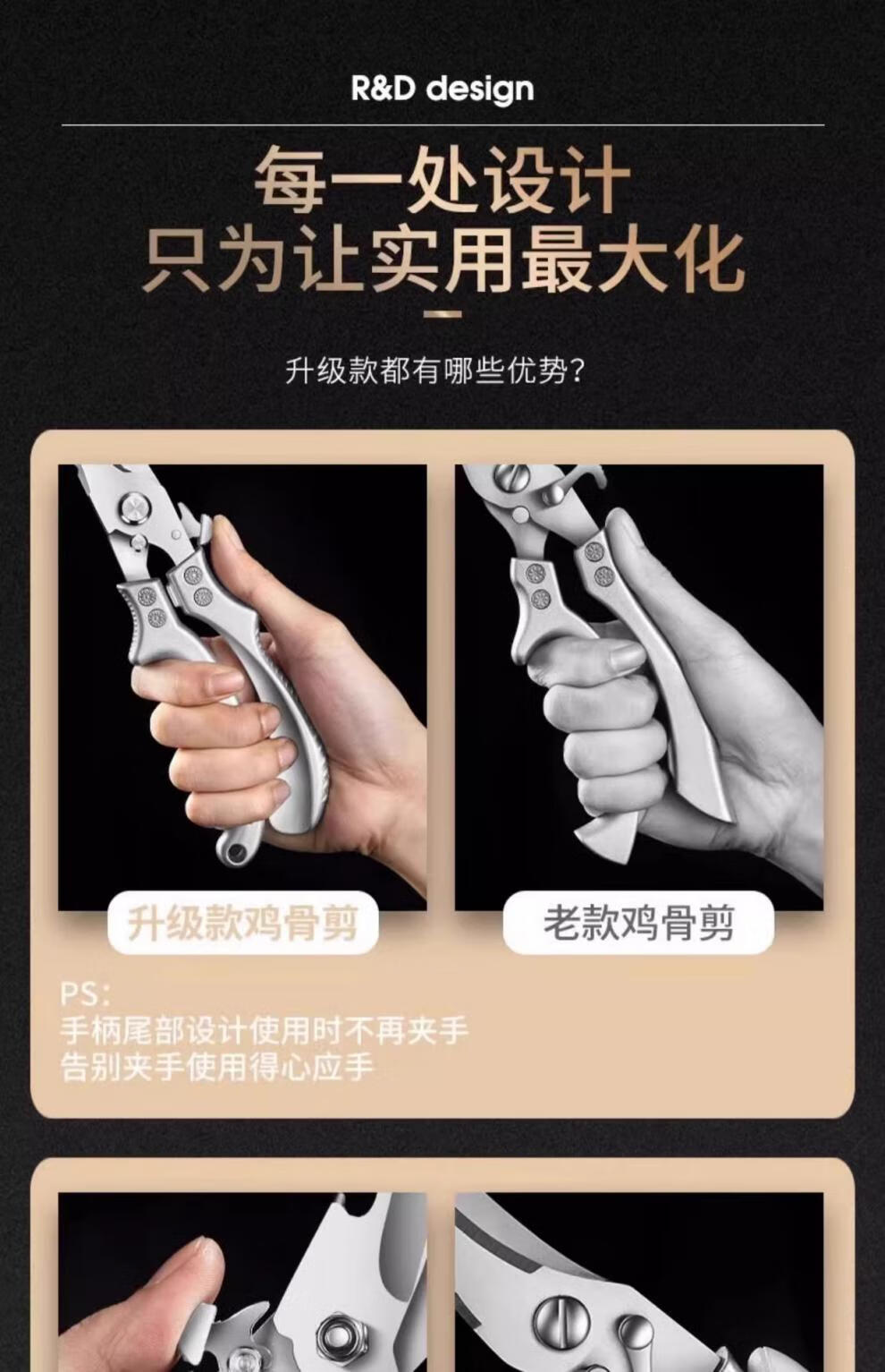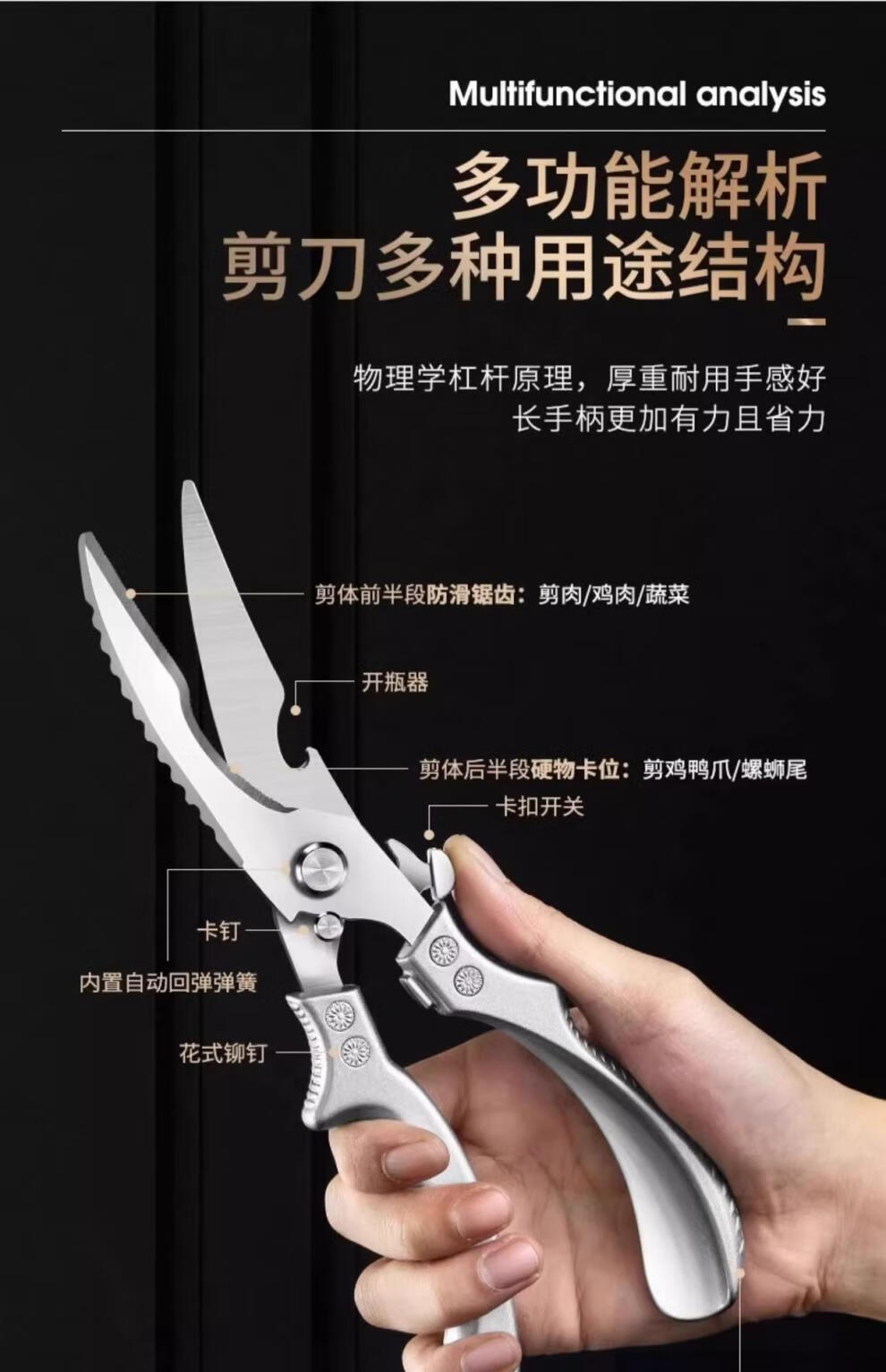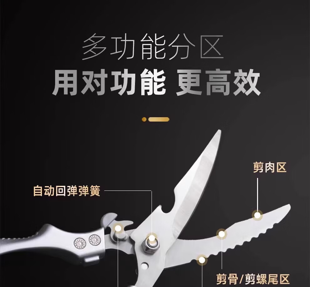 艾格辰精工剪刀家用厨房专用剪子鸡鸭鹅骨头不锈钢多功能强力鸡骨剪 厨房强力鸡骨剪【一个装】