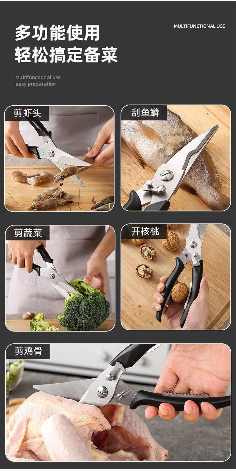 Leistungsstarke Hühnerknochenschere, extra große Haushalts-Grillküchenschere, spezielle scharfe, mit Lebensmitteln verdickte Edelstahlschere, lang anhaltende Schärfe, leistungsstarke Hühnerknochenschere, Griff aus Legierung, nicht leicht zu rosten