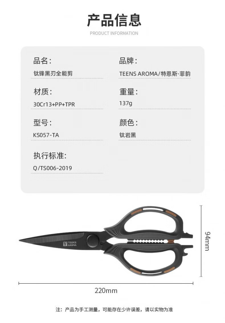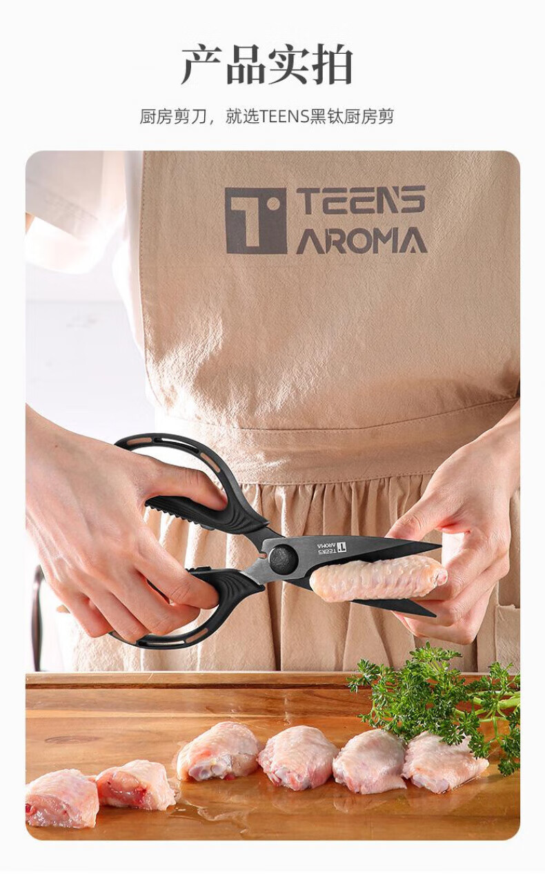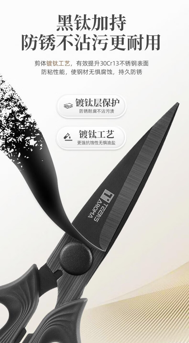 特恩斯厨房专用剪家用大号多功能不锈钢镀钛防锈剪子 钛岩黑