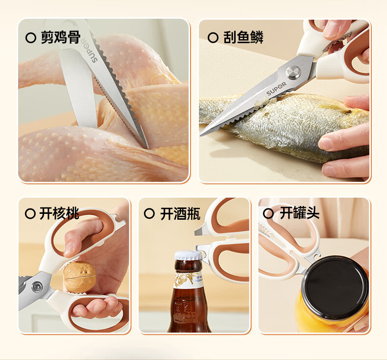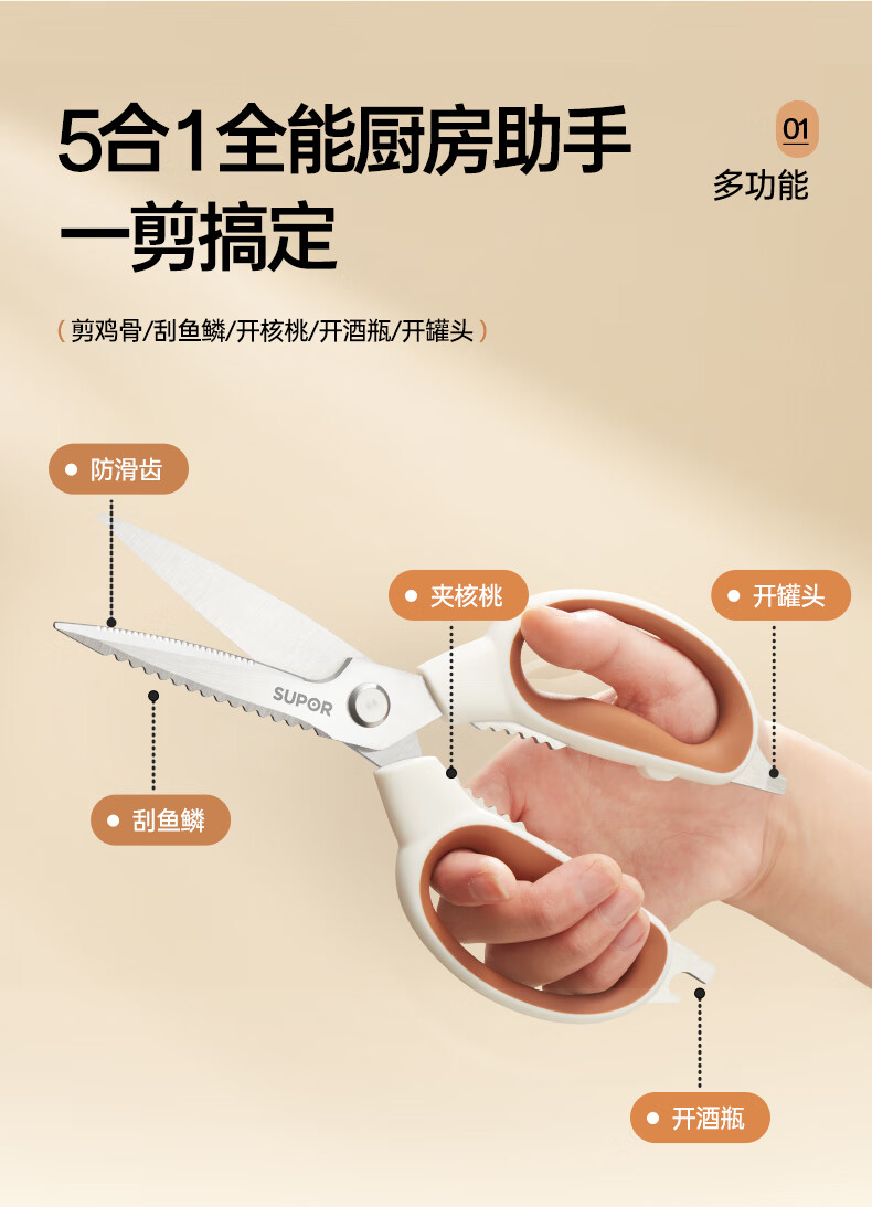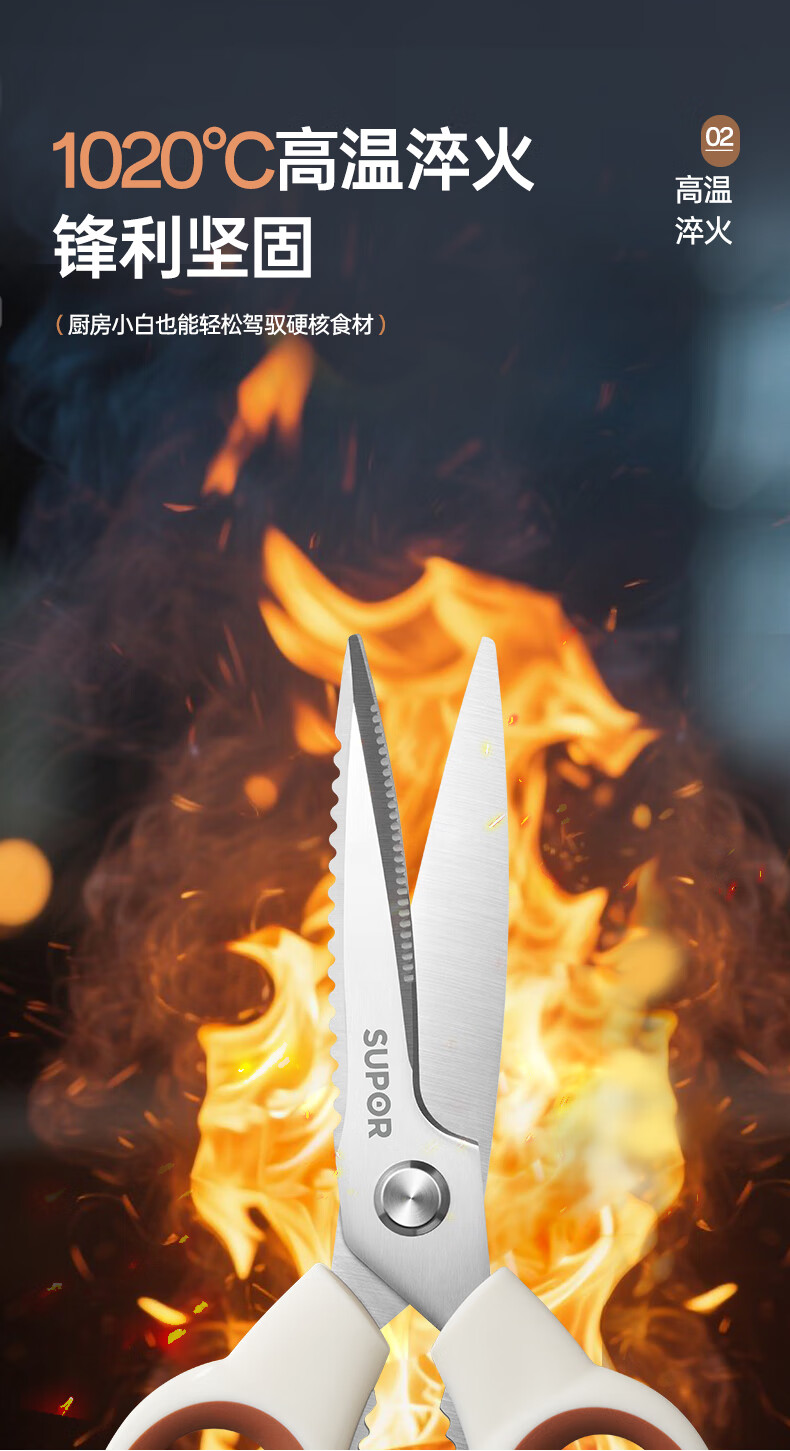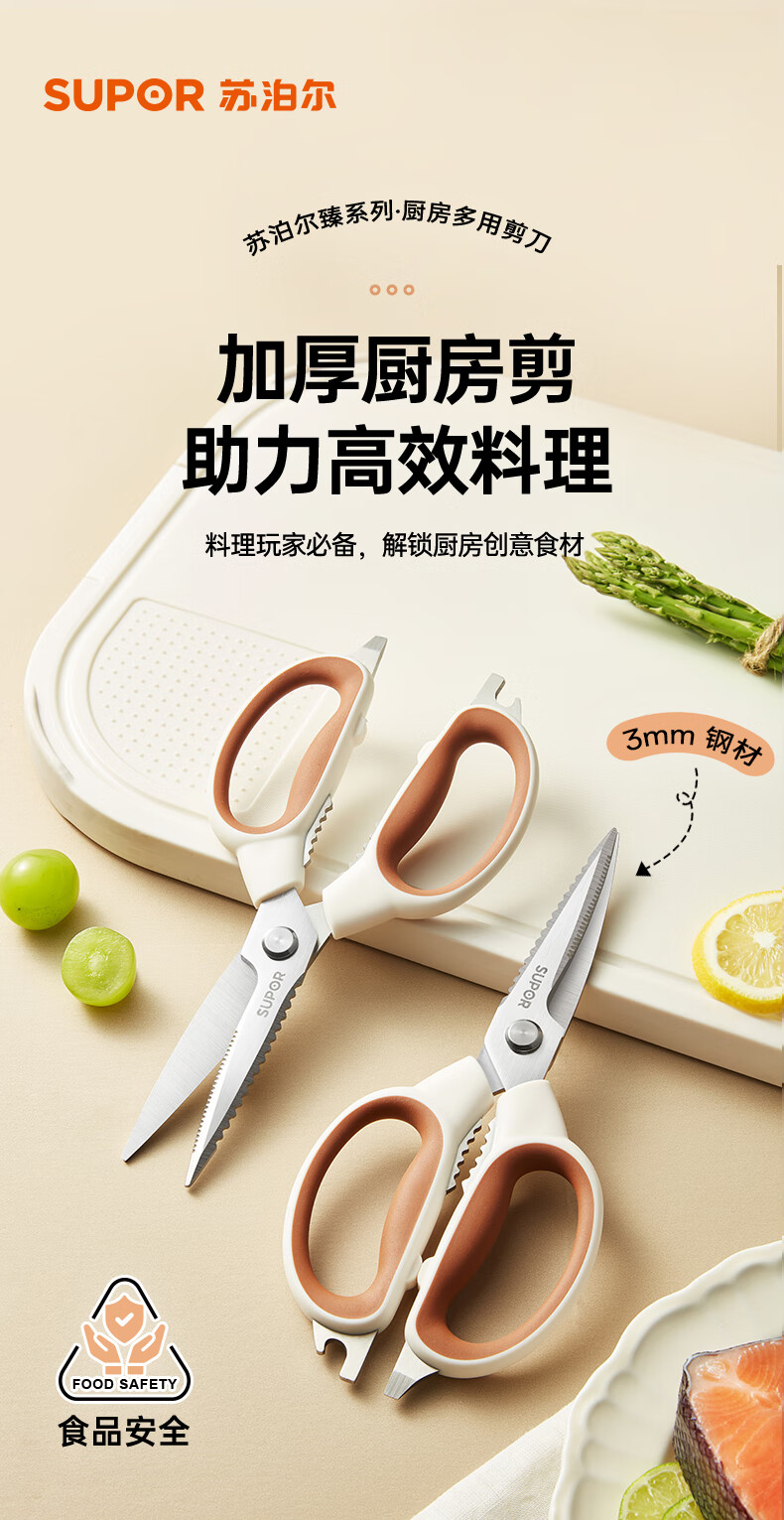 苏泊尔(SUPOR)厨房多用剪刀多用剪不锈钢家用剪食品级厨房剪多功能辅食剪鸡骨剪 臻系列-KE09S1