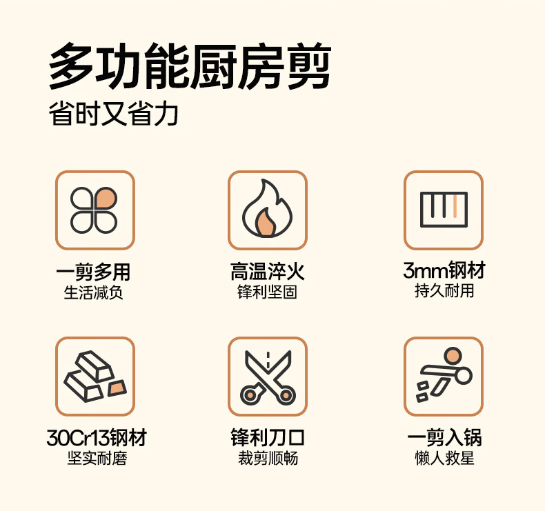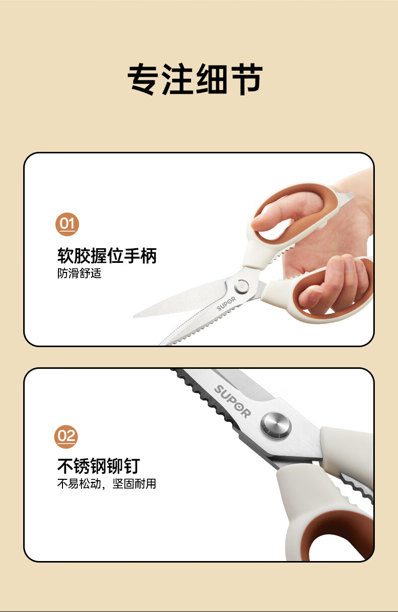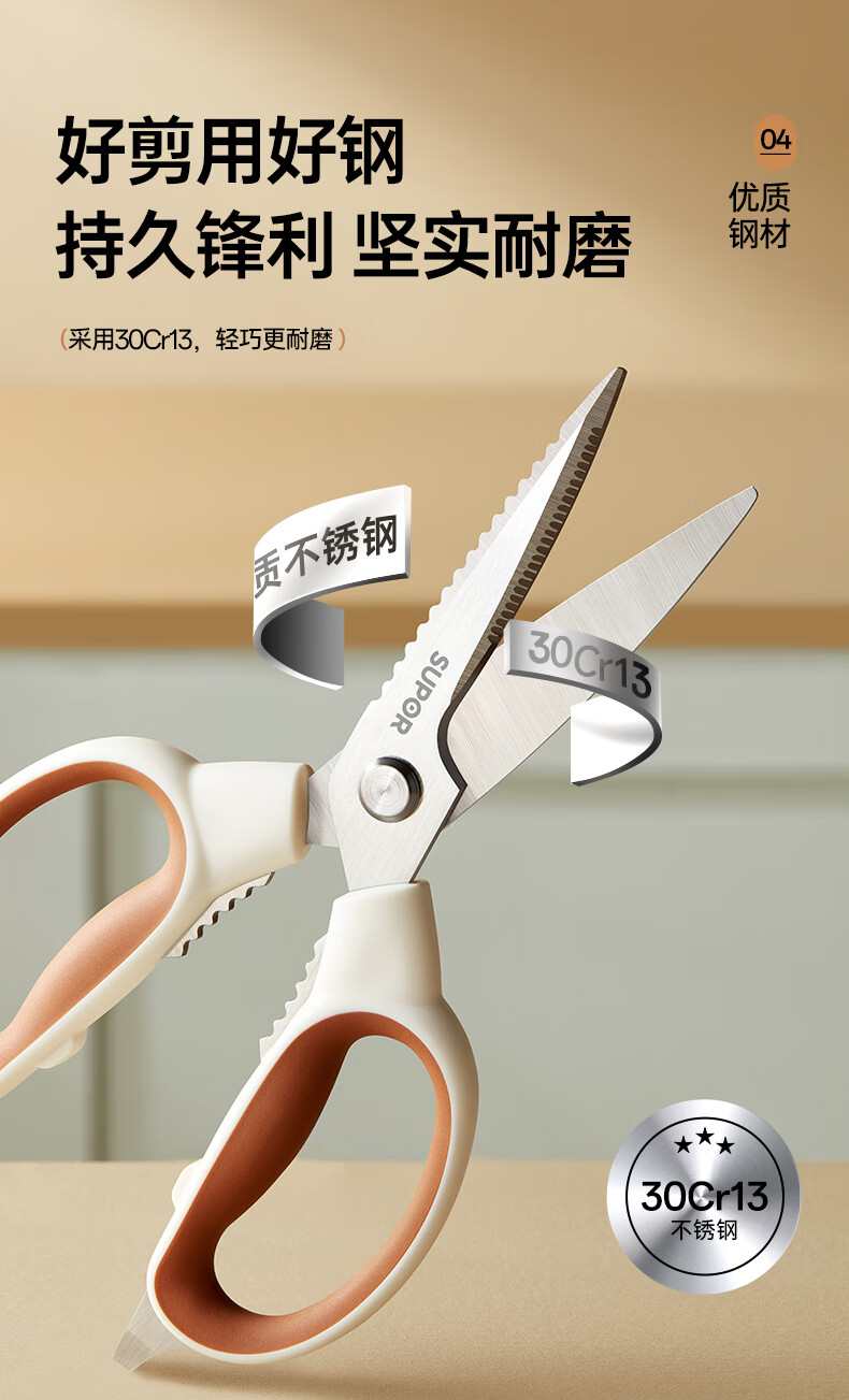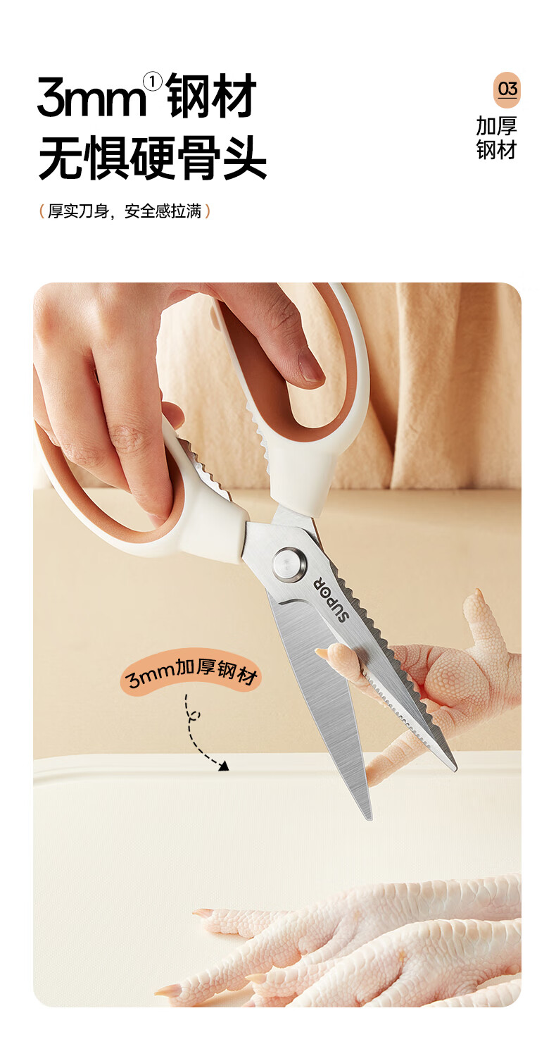 苏泊尔(SUPOR)厨房多用剪刀多用剪不锈钢家用剪食品级厨房剪多功能辅食剪鸡骨剪 臻系列-KE09S1