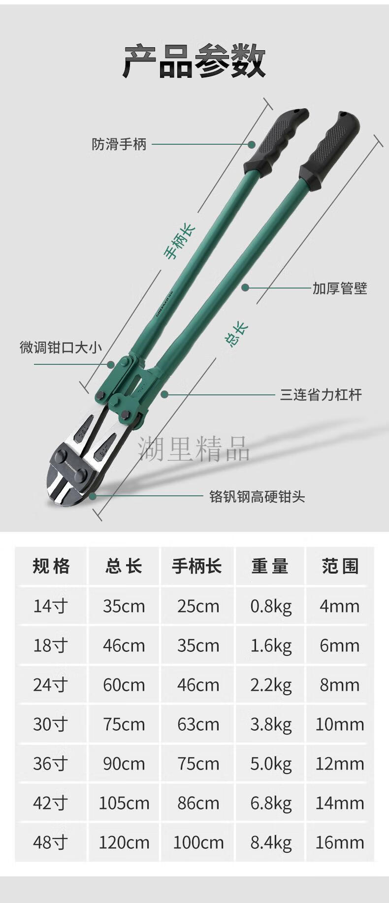Green forest bolt cutters, wire cutters for cutting steel bars, special scissors for wire cutters, powerful shearing pliers, steel bar cutting pliers, super hard and labor-saving bolt cutters 18 inches, cutting iron like mud (1.519kg