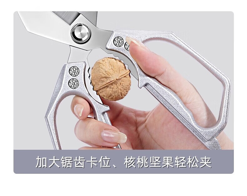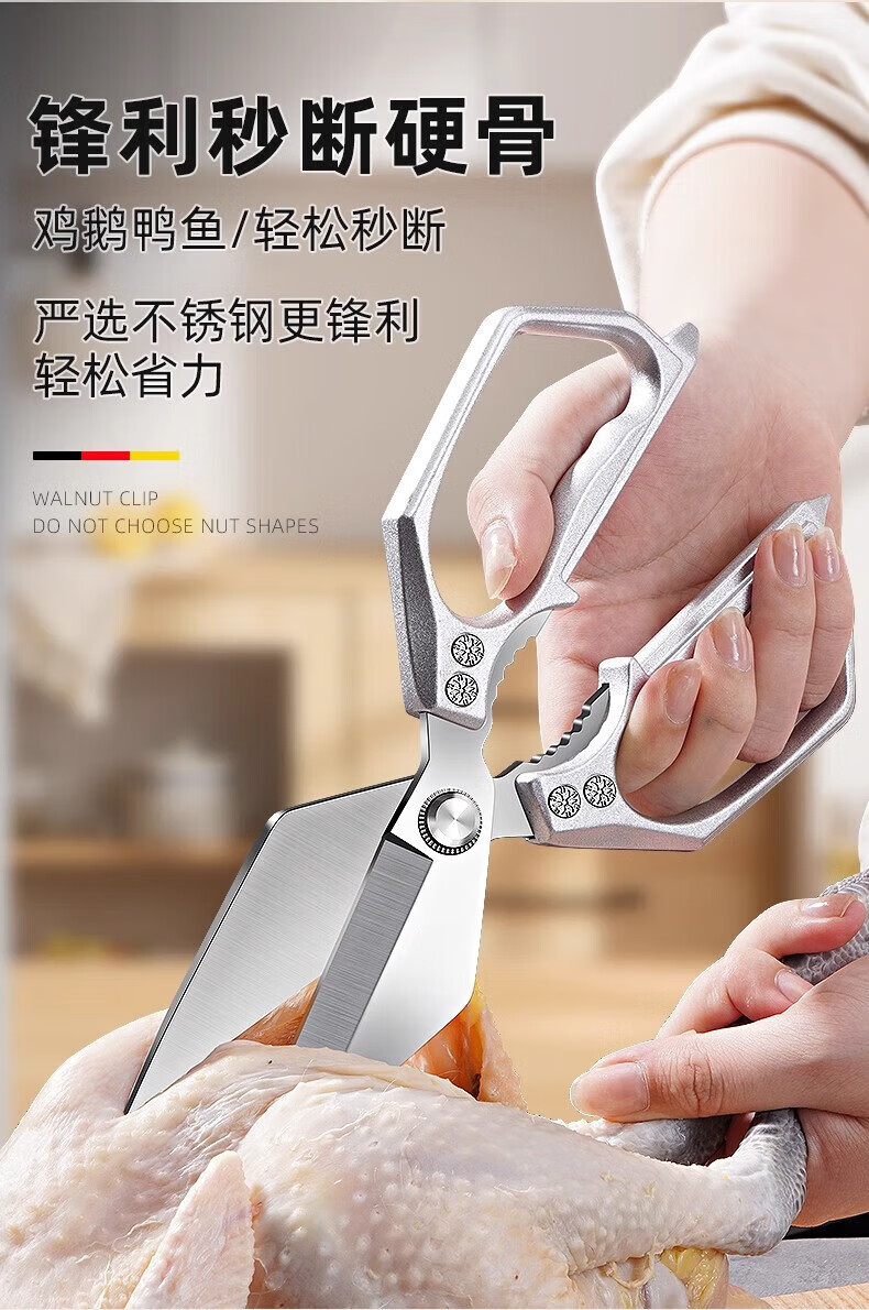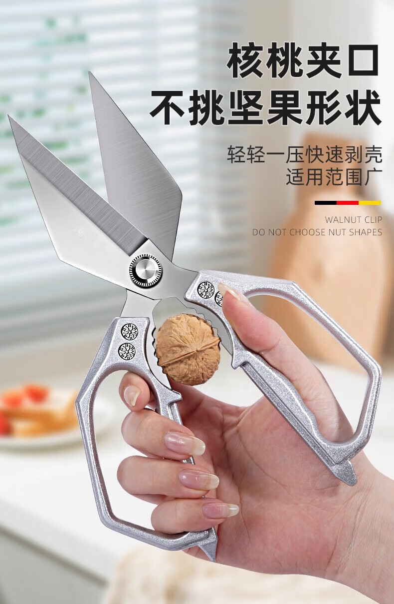 Ciseaux de cuisine allemands Meschute, ciseaux de coupe d'os ménagers, compléments alimentaires pliants spéciaux en acier inoxydable, mise à mort de poisson, ciseaux de barbecue multifonctionnels, argent haut de gamme, ciseaux puissants multifonctionnels, acier inoxydable amélioré