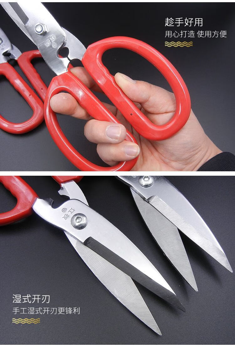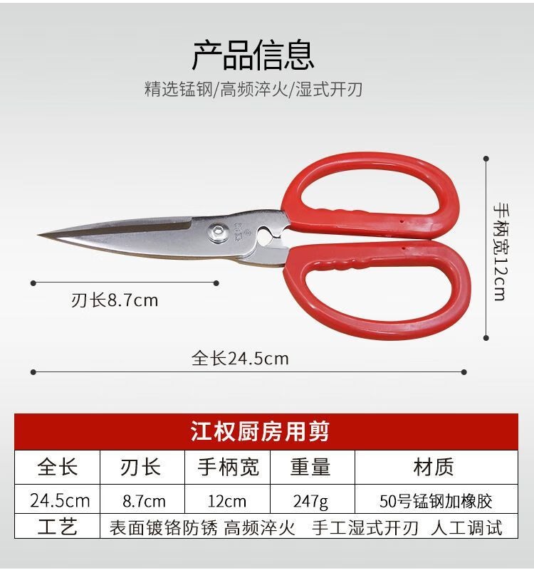 Ciseaux à os de poulet à grande tête, ciseaux de cuisine, ciseaux multifonctionnels, ciseaux à os de poulet puissants faits à la main, ciseaux à tuer les poissons et à viande domestiques, grands ciseaux de cuisine Jiangquan, ciseaux multifonctionnels, ciseaux à os de poulet puissants faits à la main, dédiés à la destruction des poissons domestiques et aux ciseaux à viande.