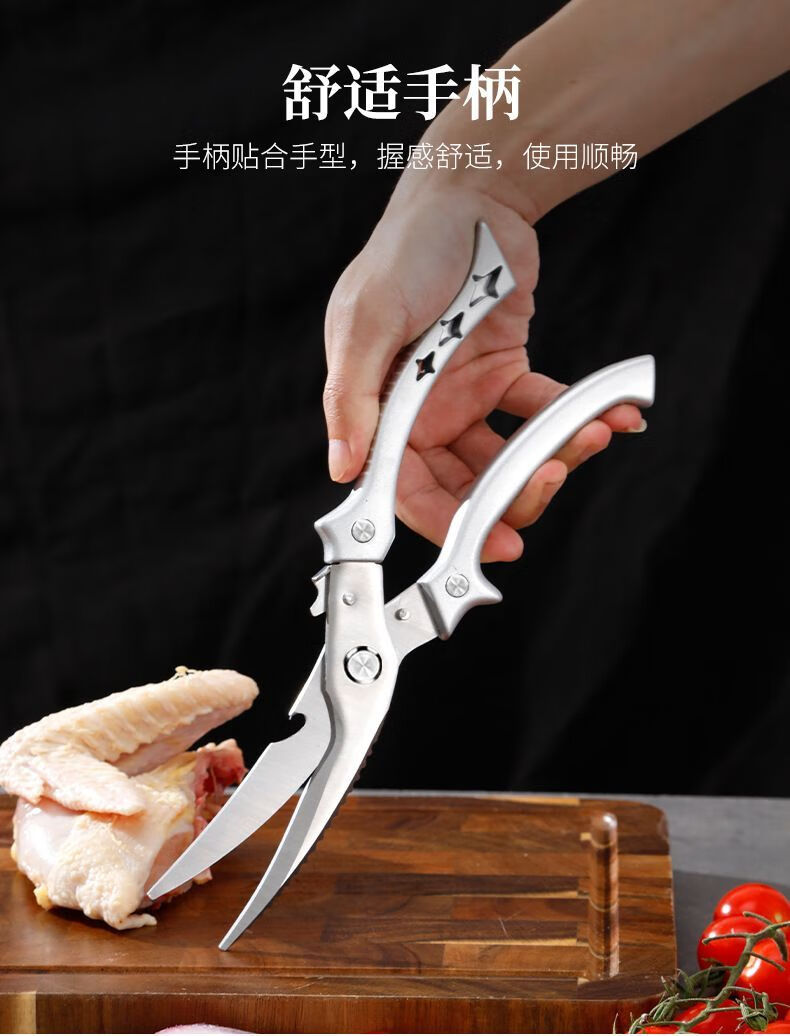 Stainless steel kitchen scissors, chicken bone scissors, chicken rack scissors, chicken wishbone scissors, rebound, labor-saving, commercial strong scissors