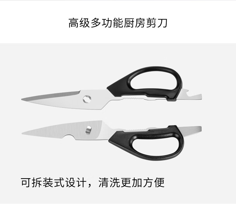 Millenarie multifunctional kitchen scissors household stainless steel food scissors fish bone steak barbecue scissors to open walnut beer bottle multifunctional kitchen scissors (black)
