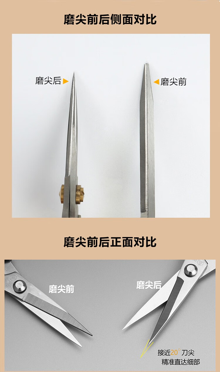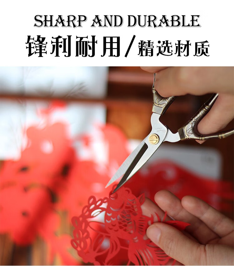 There are two special scissors for paper cutting with sharp tips. Window cutter scissors, embroidery handicraft scissors, detail scissors, artist scissors, medium-sized bamboo scissors, daily scissors, finely ground by hand.